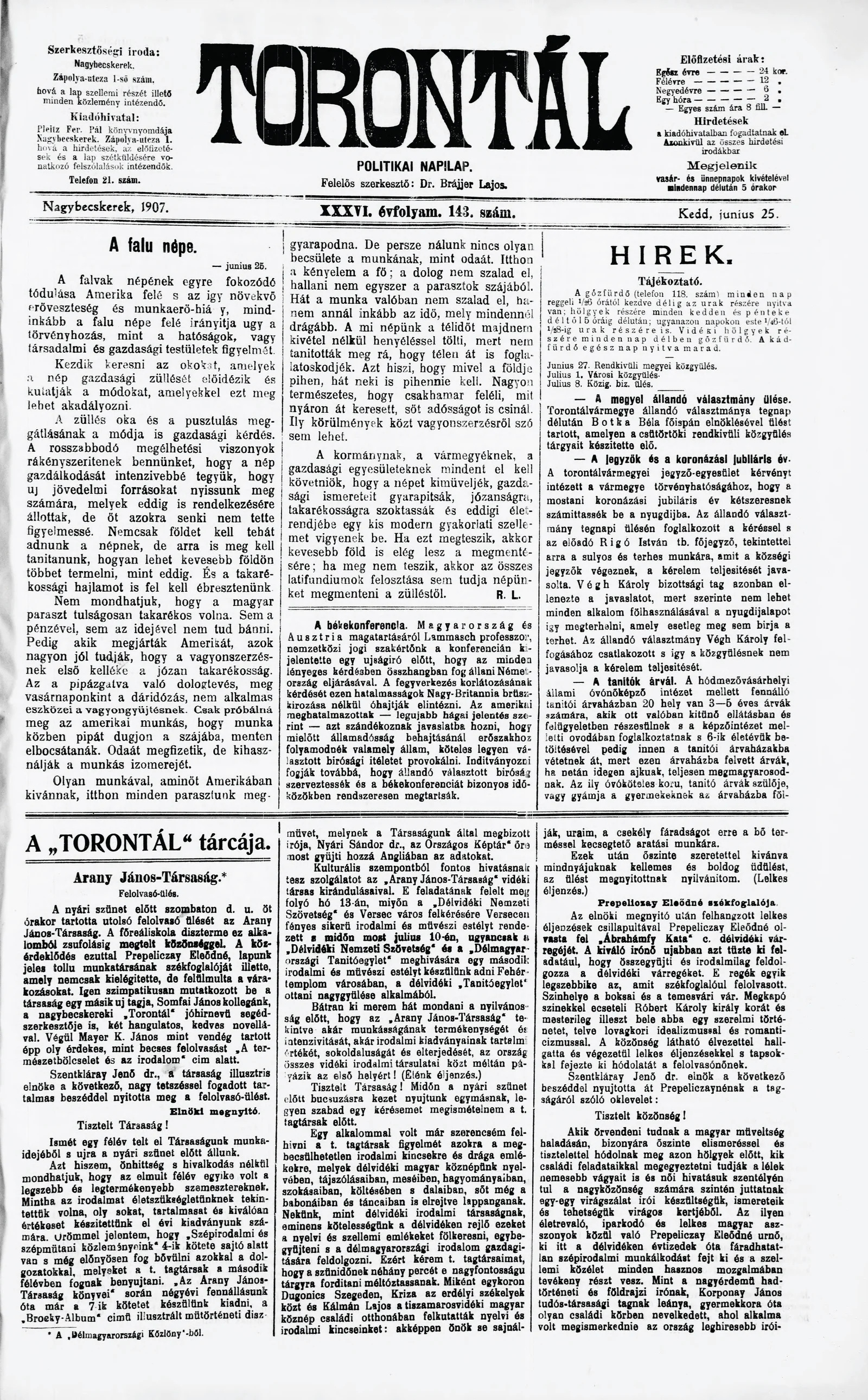 Torontál, 36. évf. 1907. június 25. 143. sz.