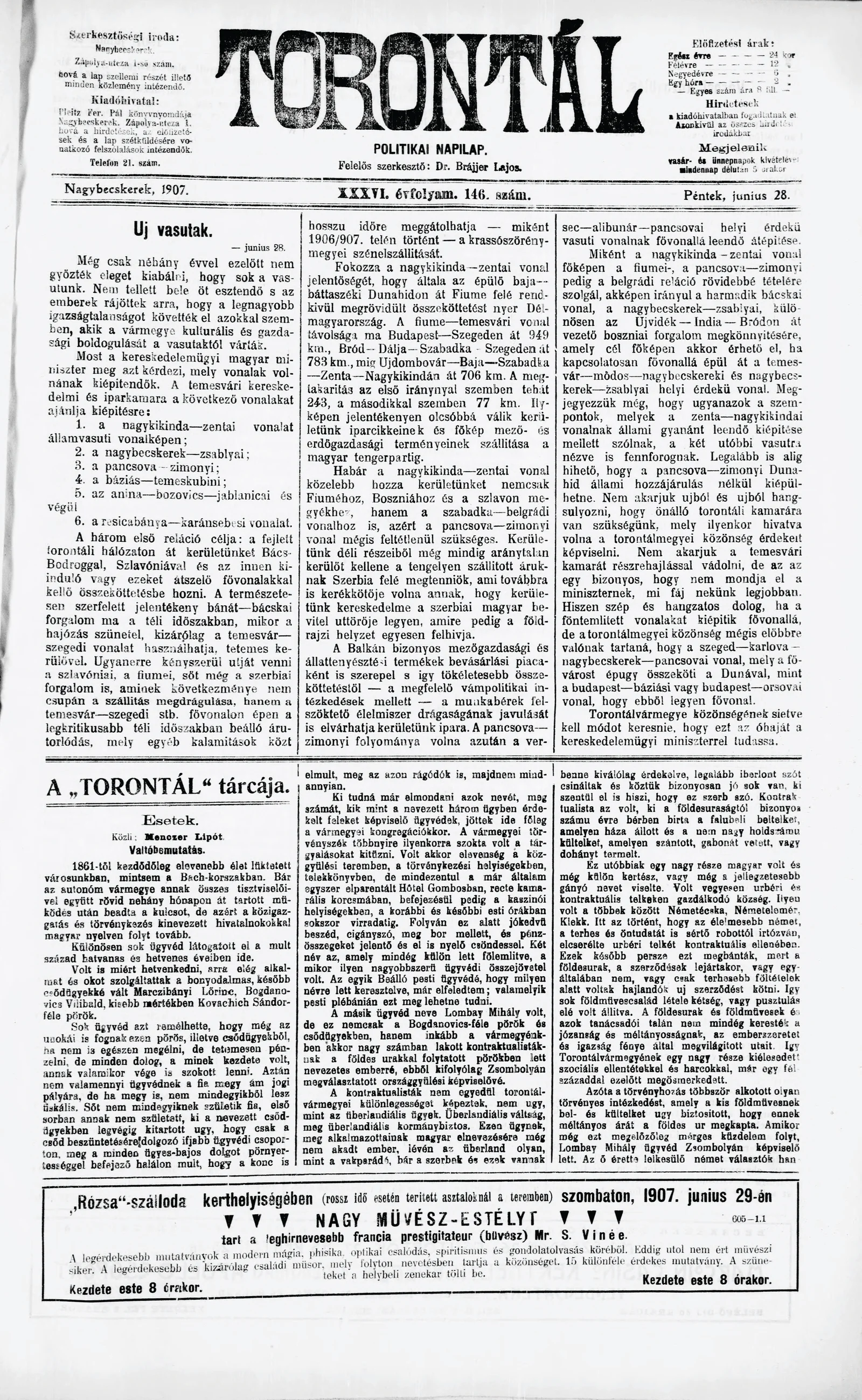 Torontál, 36. évf. 1907. június 28. 146. sz.