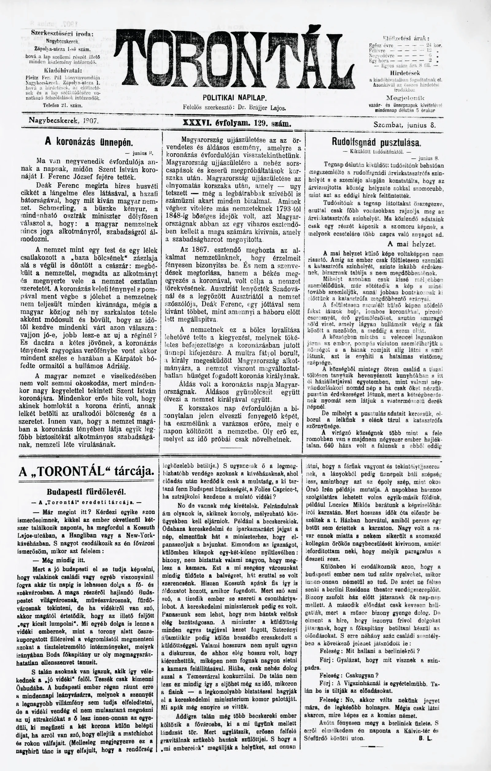 Torontál, 36. évf. 1907. június 8. 129. sz.
