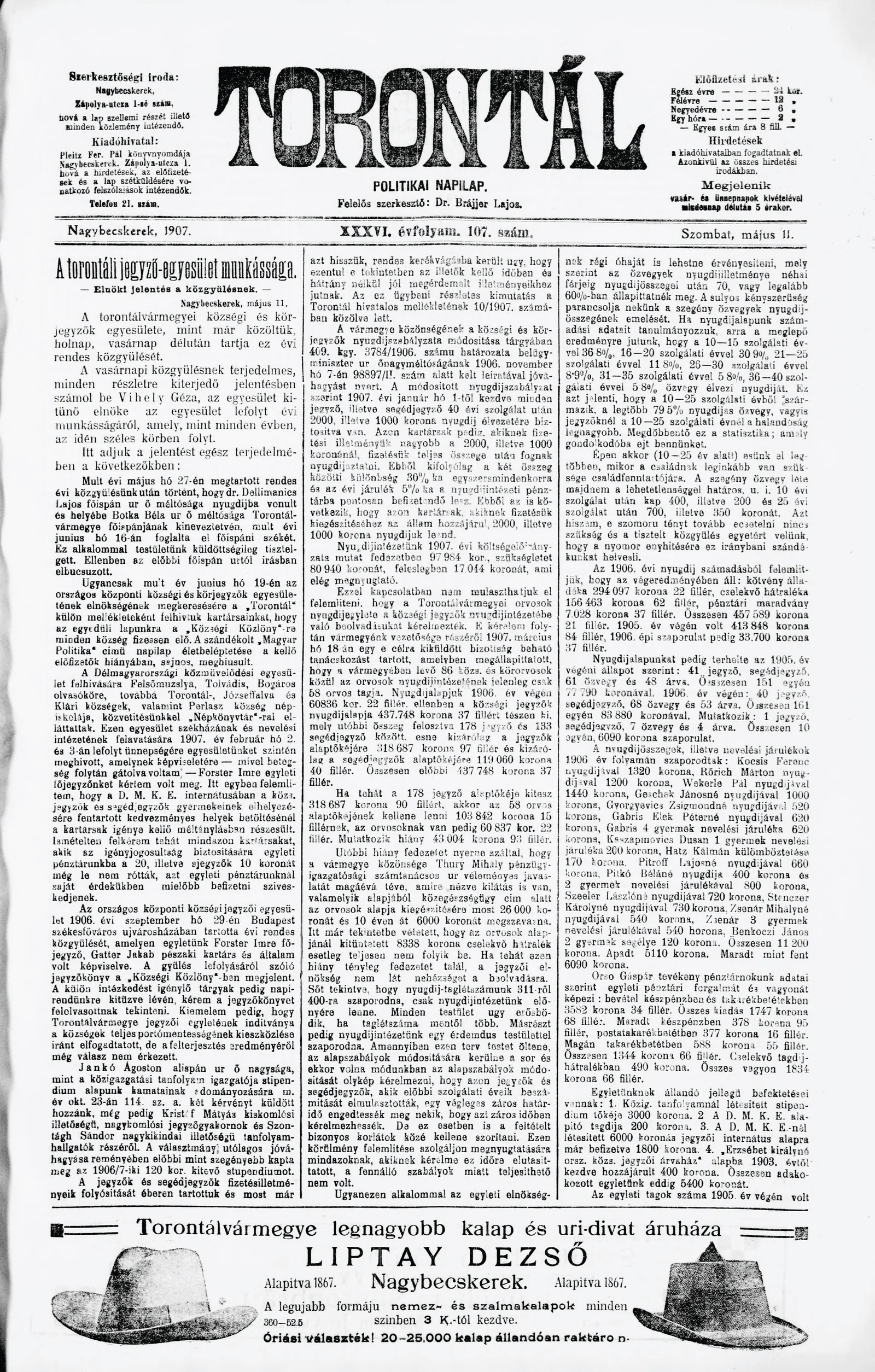 Torontál, 36. évf. 1907. május 11. 107. sz.