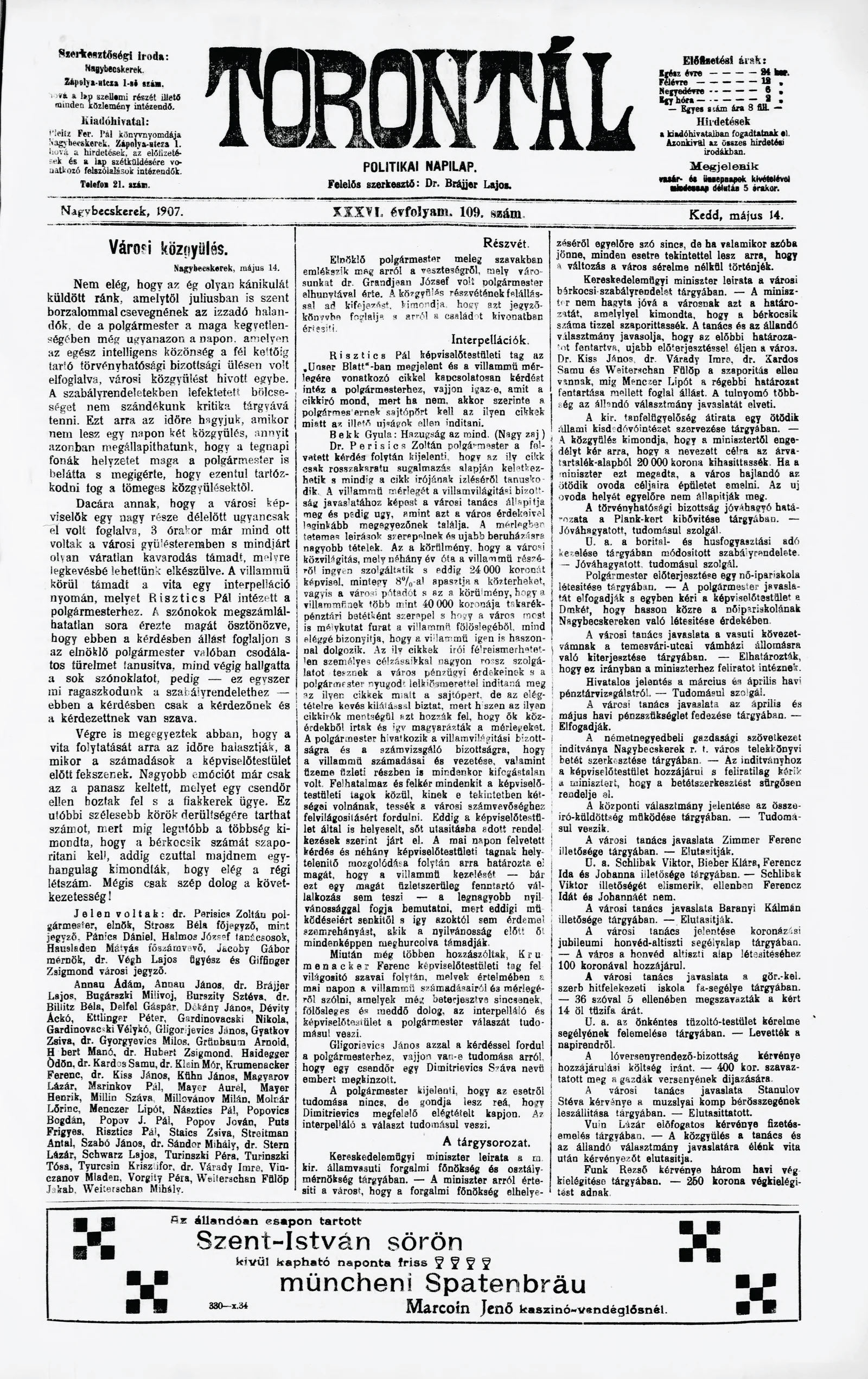 Torontál, 36. évf. 1907. május 14. 109. sz.