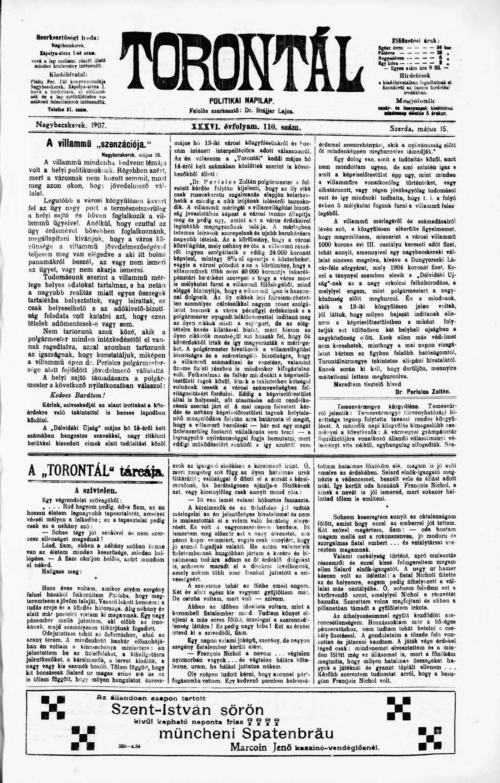 Torontál, 36. évf. 1907. május 15. 110. sz.