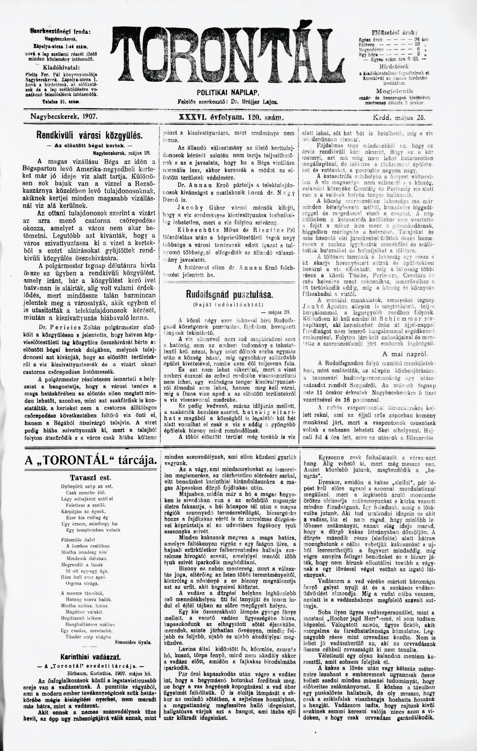 Torontál, 36. évf. 1907. május 28. 120. sz.