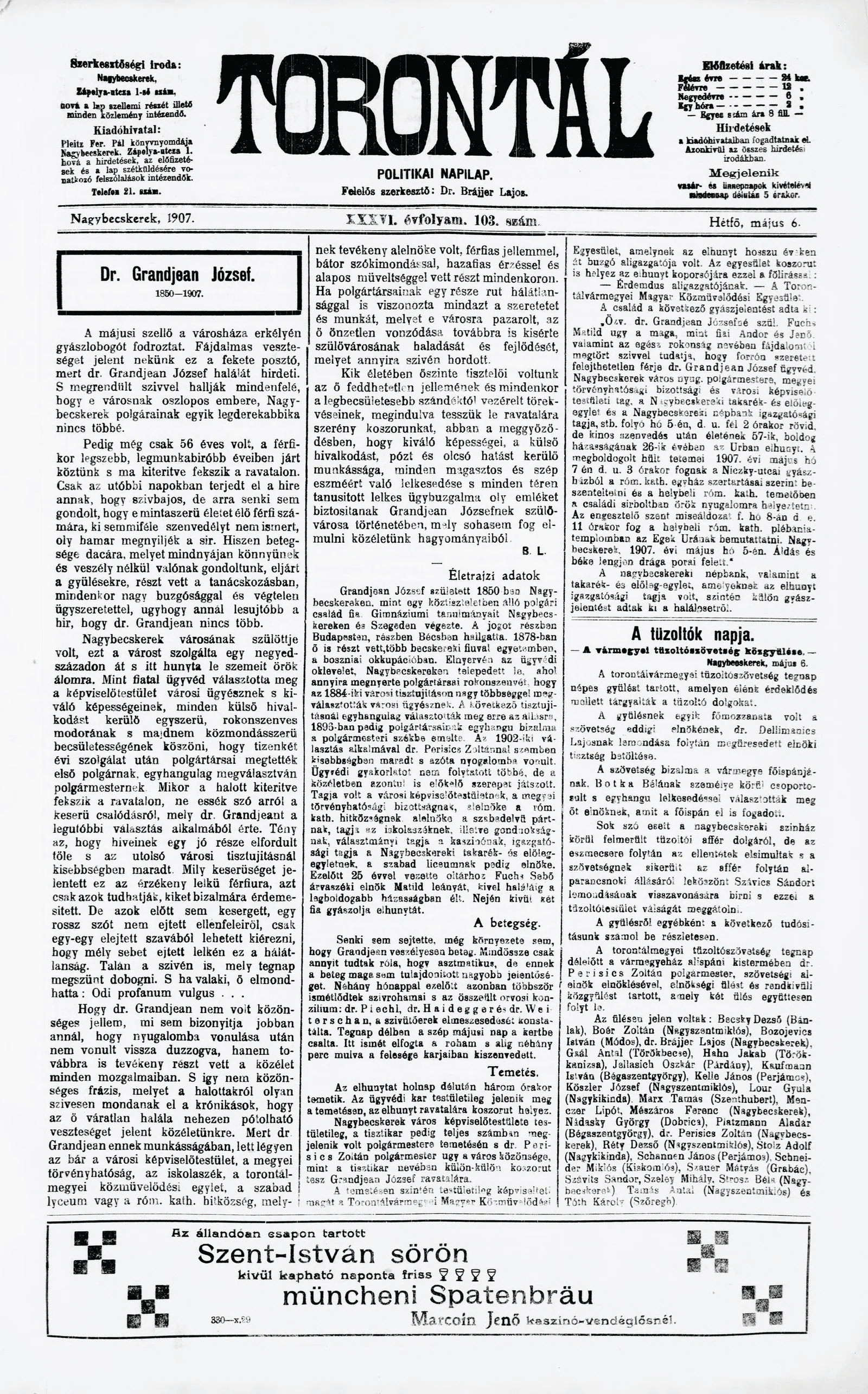 Torontál, 36. évf. 1907. május 6. 103. sz.