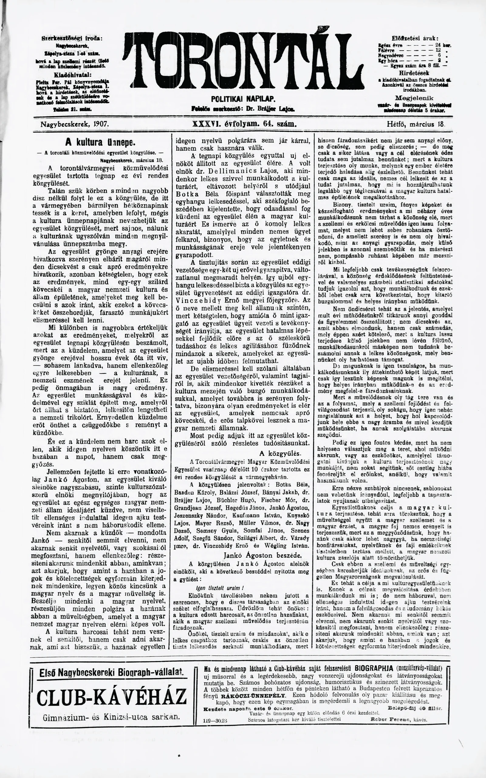 Torontál, 36. évf. 1907. március 18. 64. sz.