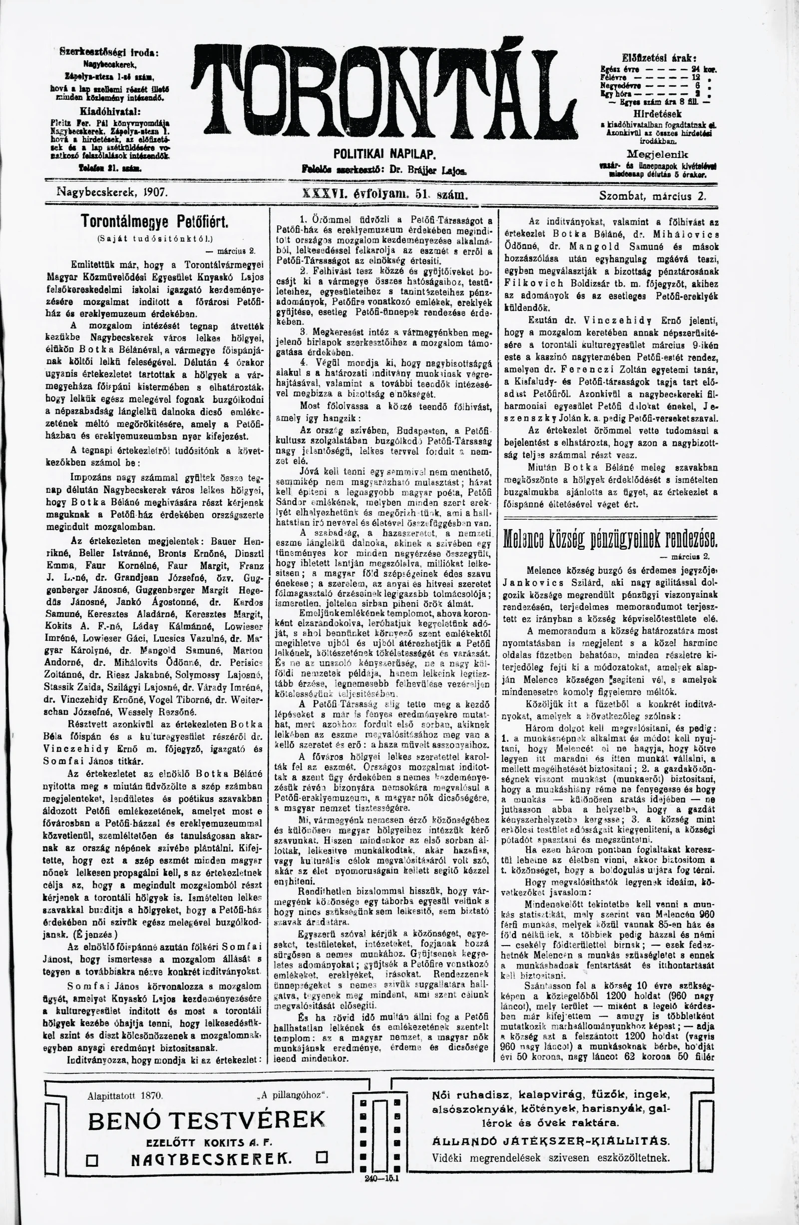 Torontál, 36. évf. 1907. március 2. 51. sz.
