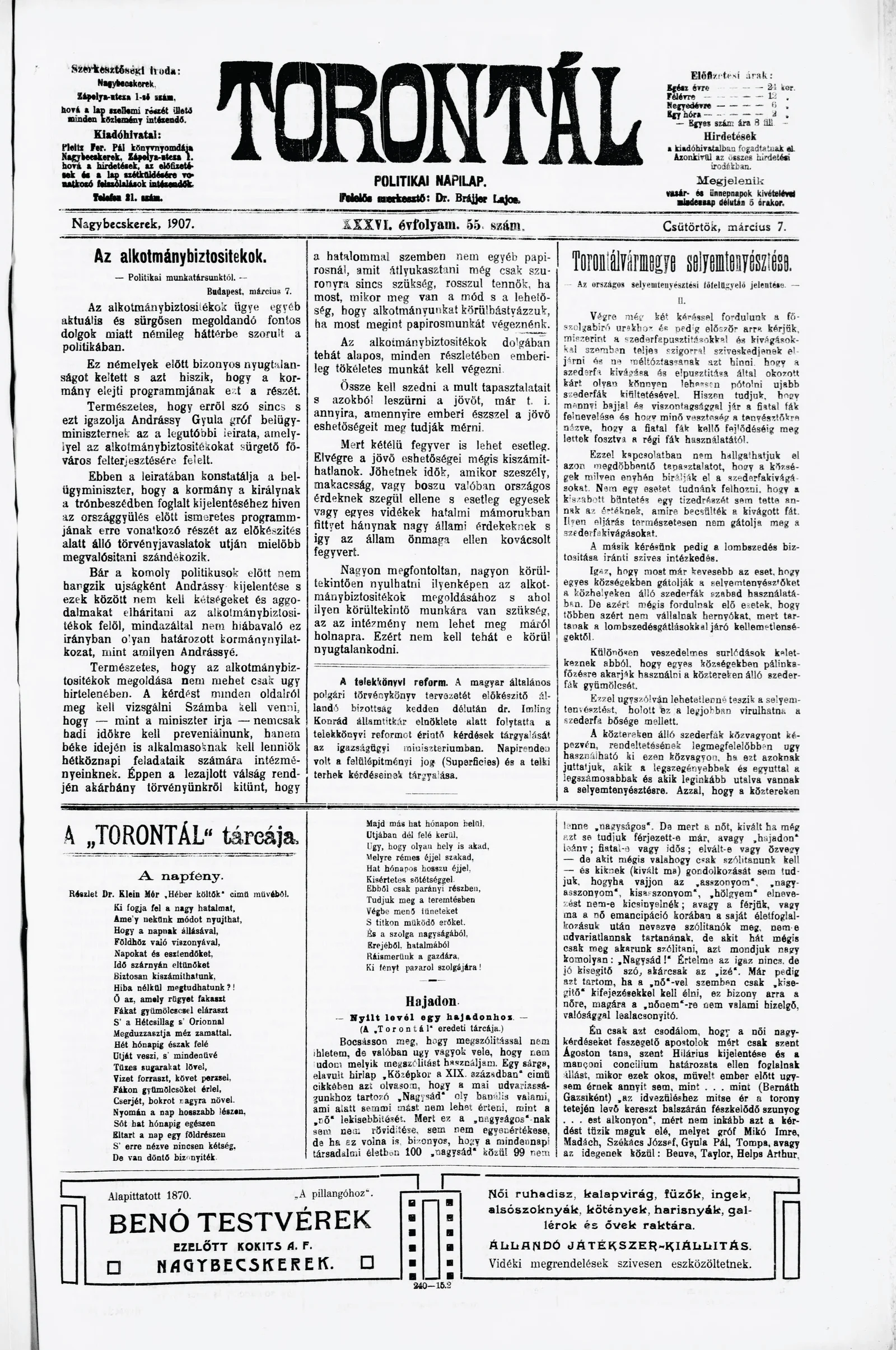 Torontál, 36. évf. 1907. március 7. 55. sz.