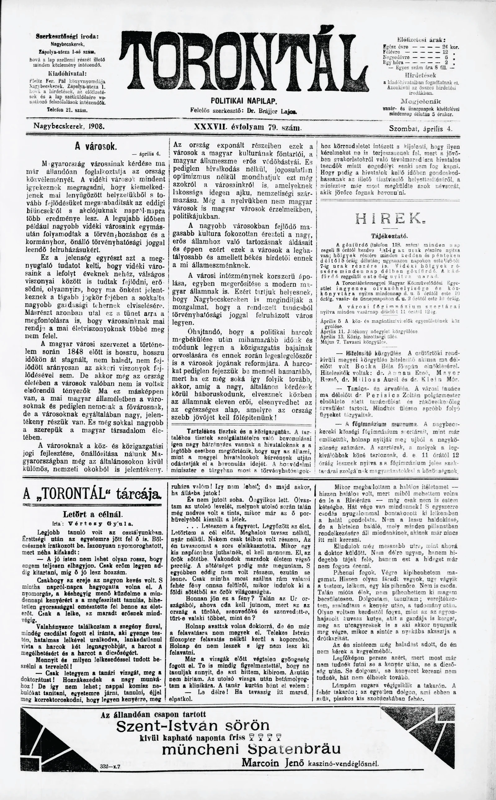 Torontál, 37. évf. 1908. április 4. 79. sz.