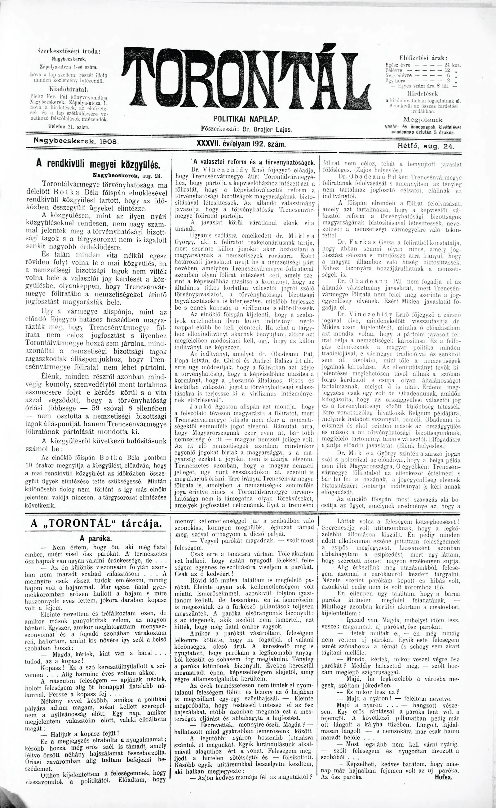 Torontál, 37. évf. 1908. augusztus 24. 192. sz.