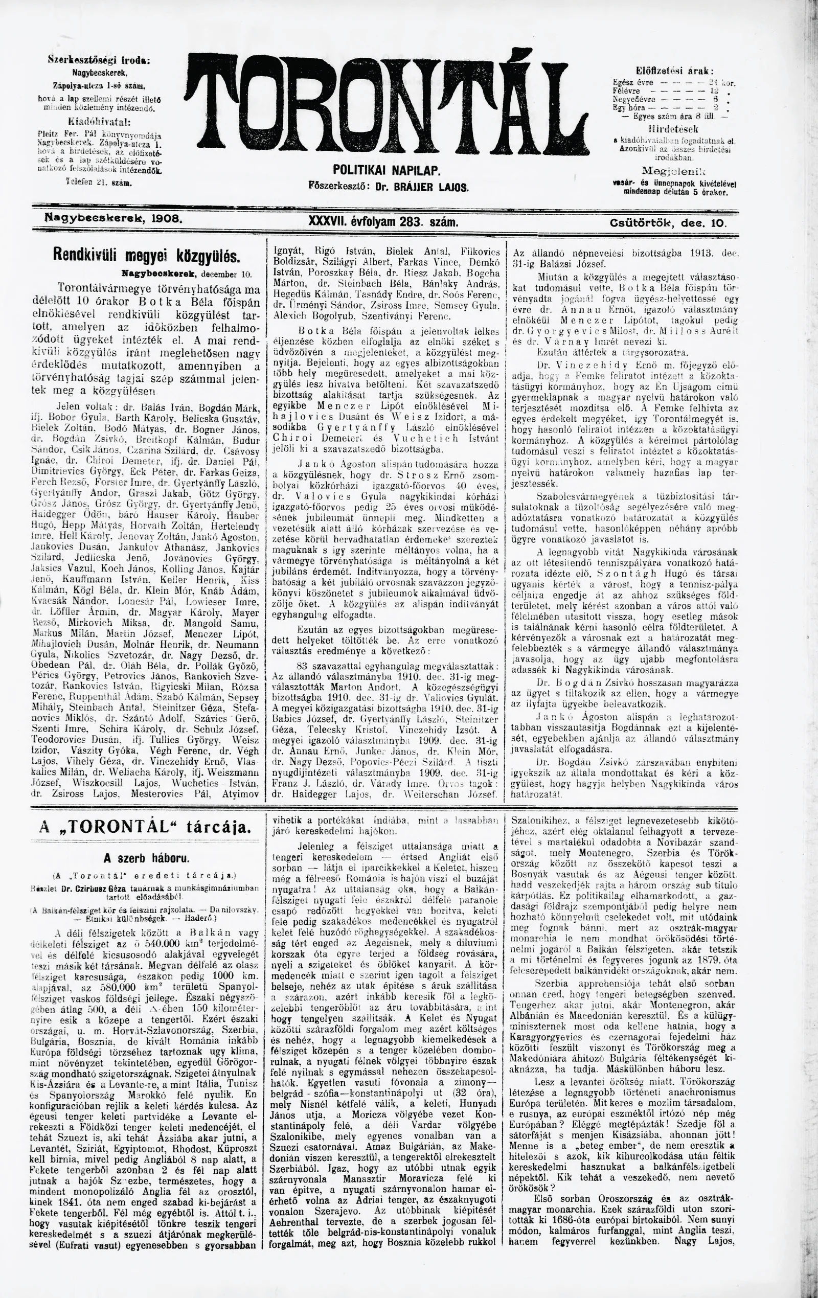 Torontál, 37. évf. 1908. december 10. 283. sz.