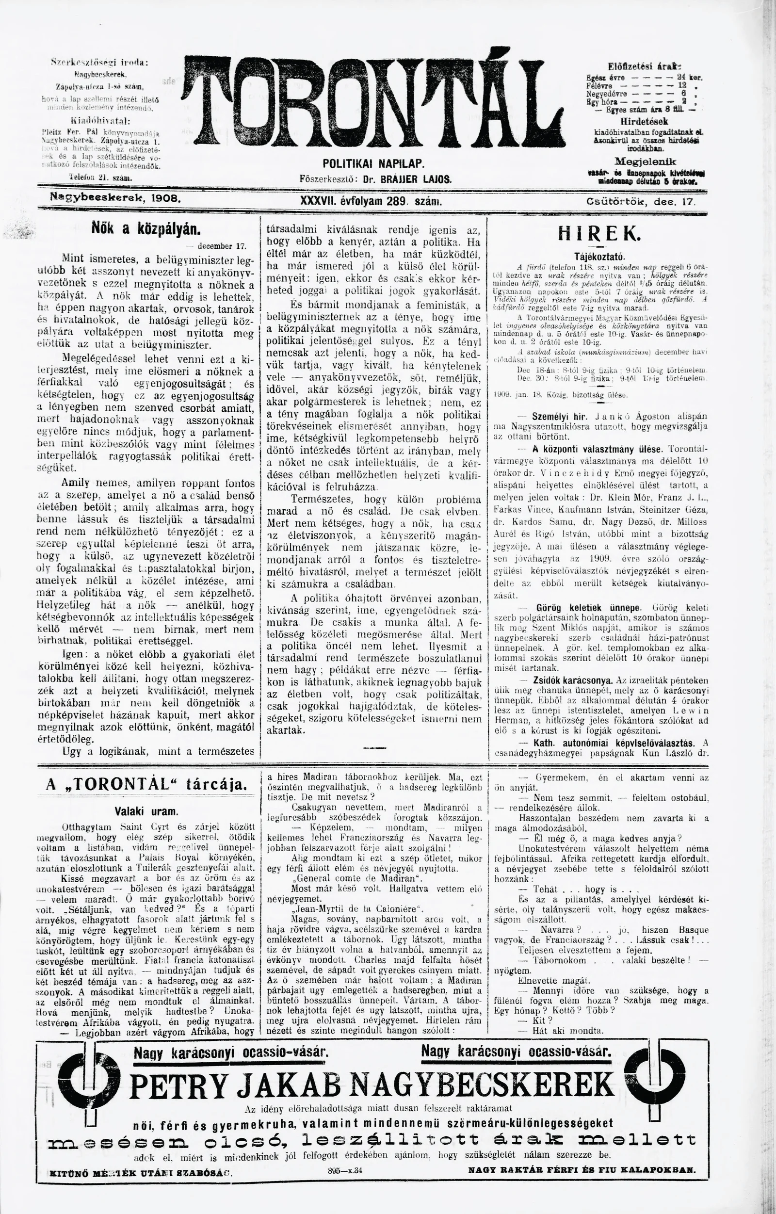Torontál, 37. évf. 1908. december 17. 289. sz.