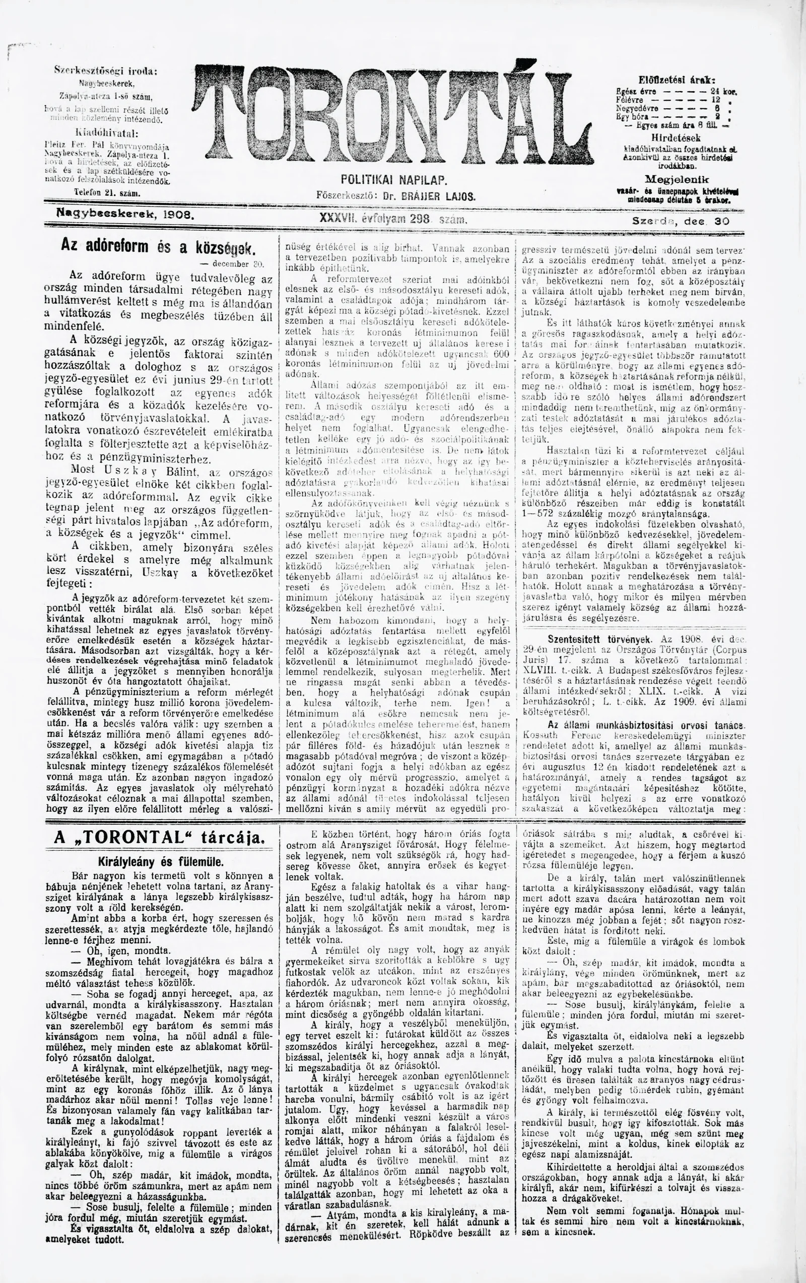 Torontál, 37. évf. 1908. december 30. 298. sz.