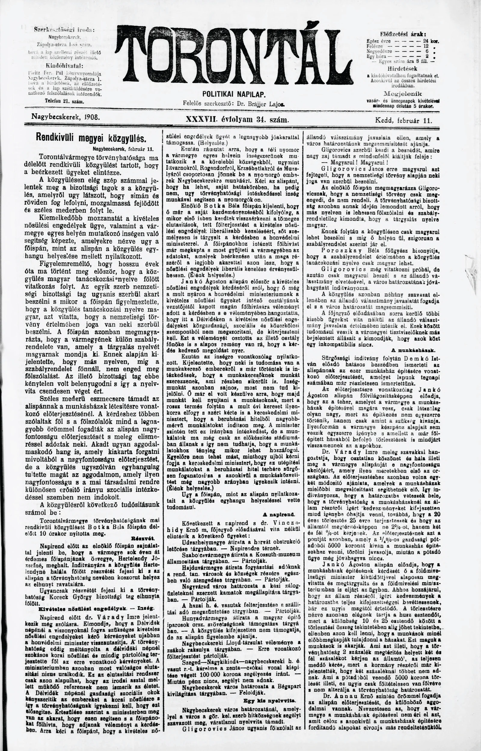 Torontál, 37. évf. 1908. február 11. 34. sz.