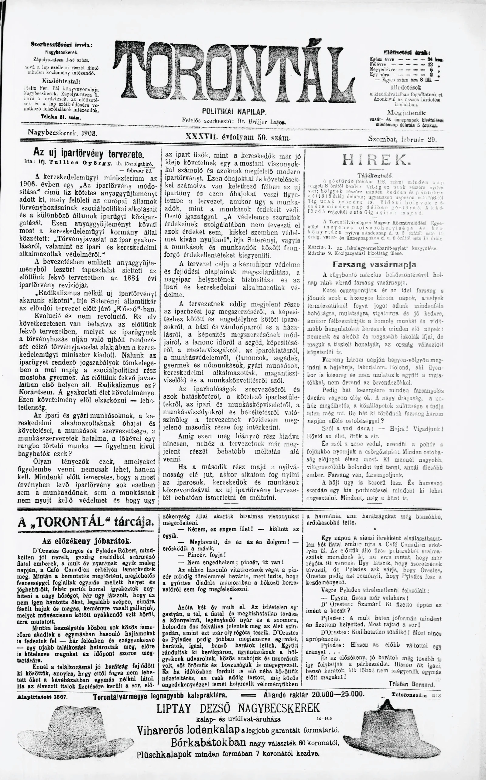 Torontál, 37. évf. 1908. február 29. 50. sz.