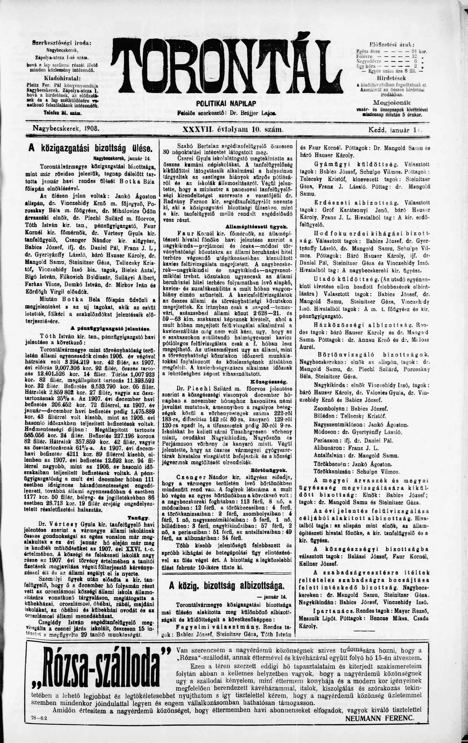 Torontál, 37. évf. 1908. január 14. 10. sz.