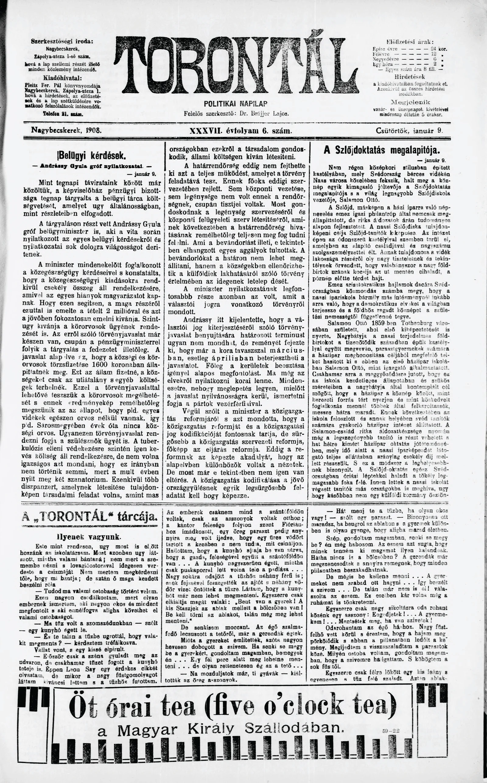 Torontál, 37. évf. 1908. január 9. 6. sz.