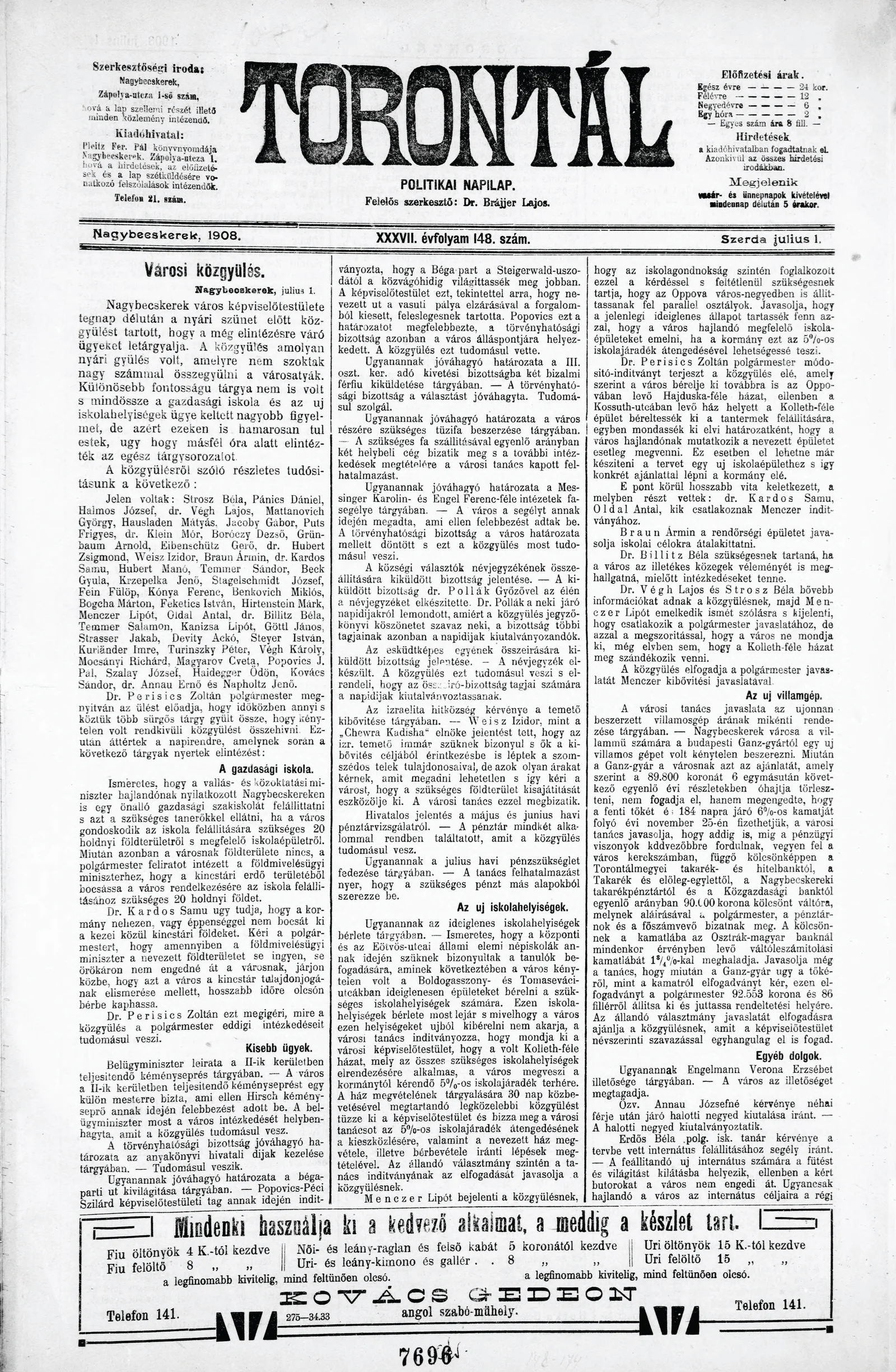 Torontál, 37. évf. 1908. július 1. 148. sz.