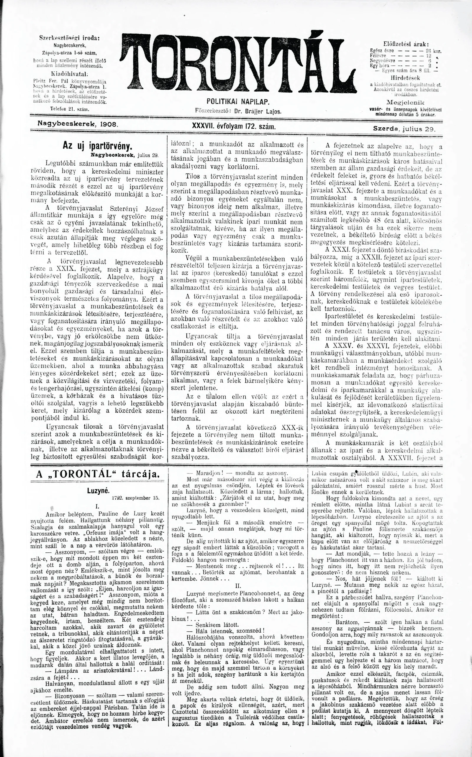Torontál, 37. évf. 1908. július 29. 172. sz.