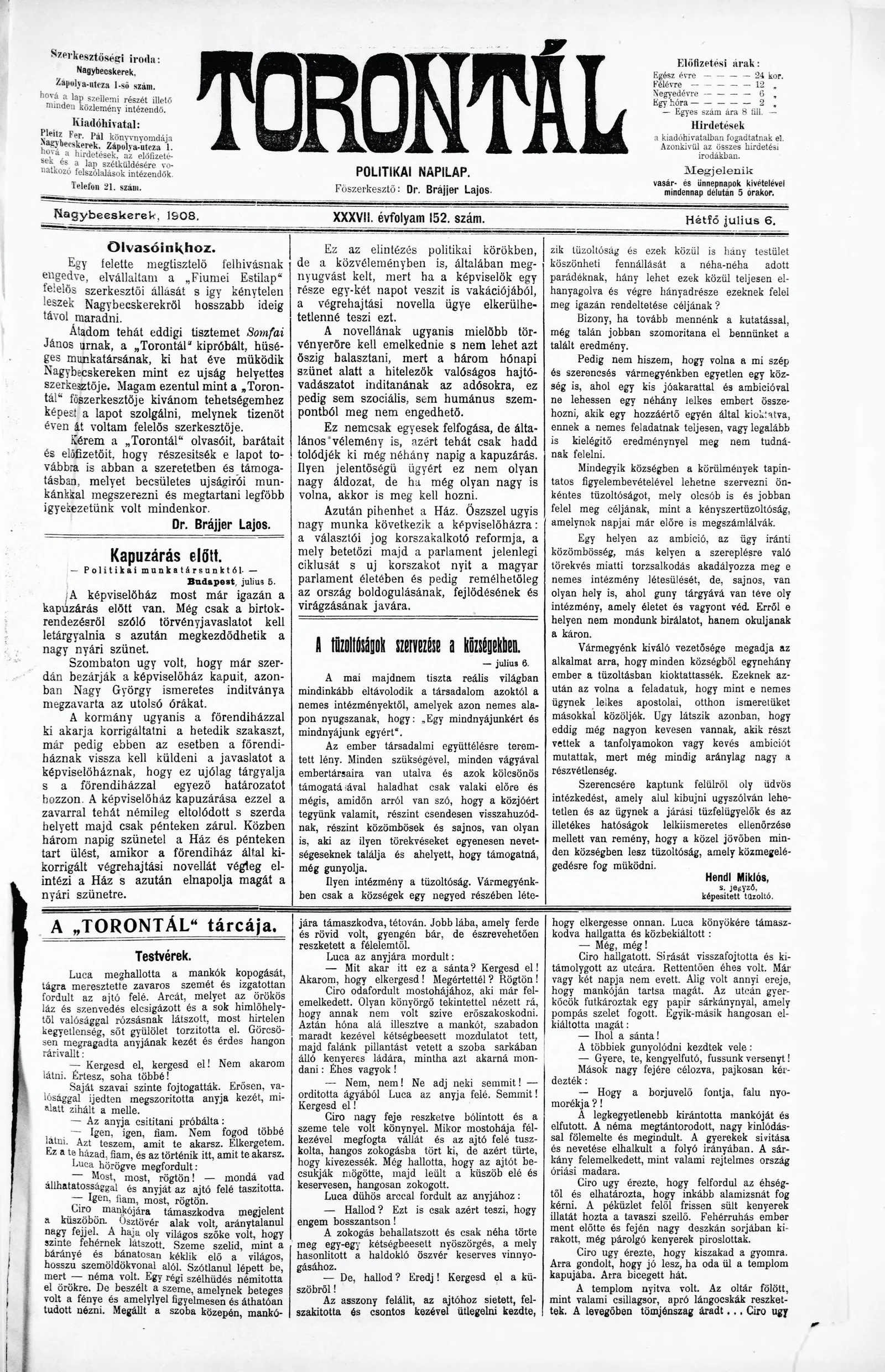 Torontál, 37. évf. 1908. július 6. 152. sz.