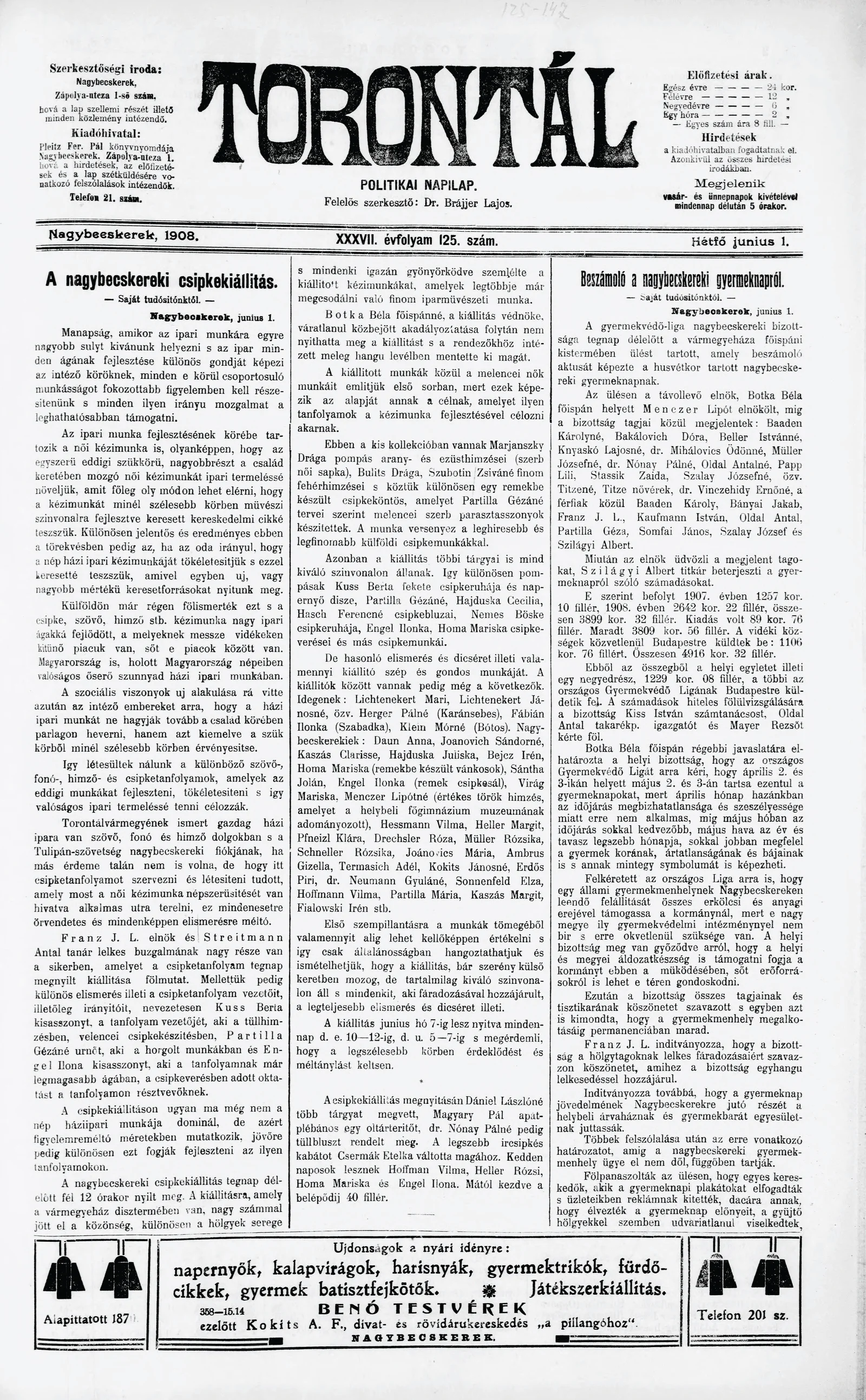 Torontál, 37. évf. 1908. június 1. 125. sz.