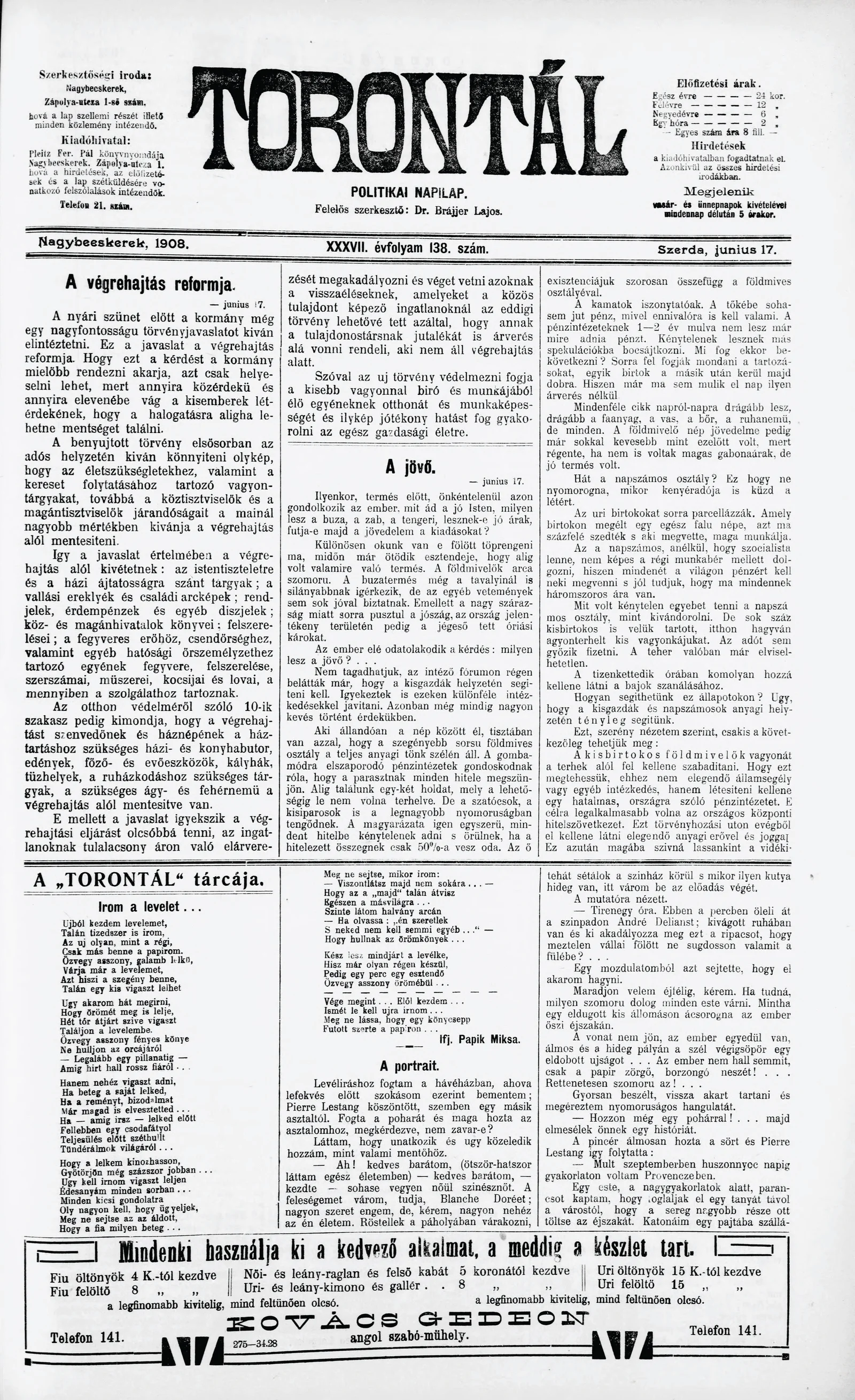 Torontál, 37. évf. 1908. június 17. 138. sz.