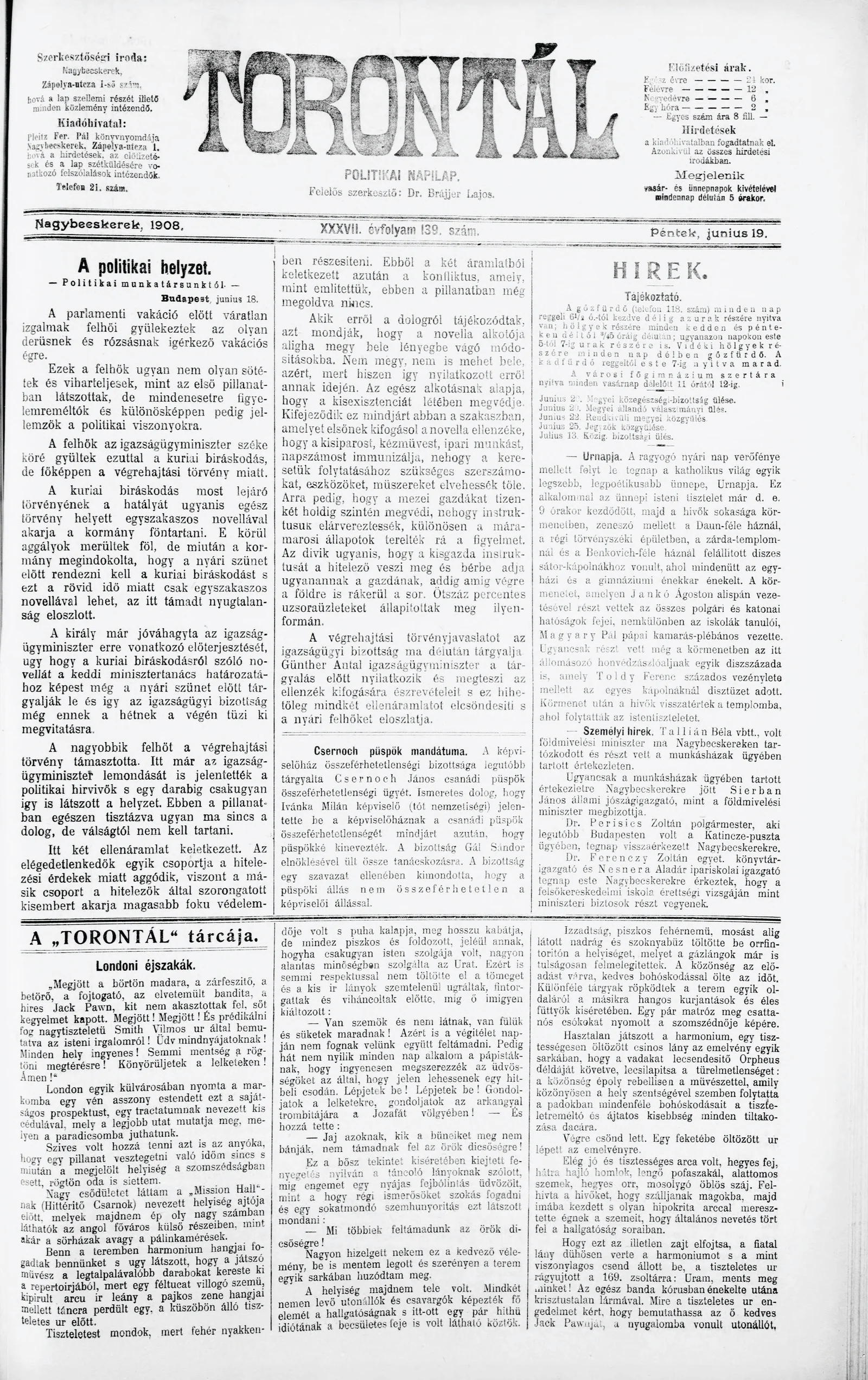 Torontál, 37. évf. 1908. június 19. 139. sz.