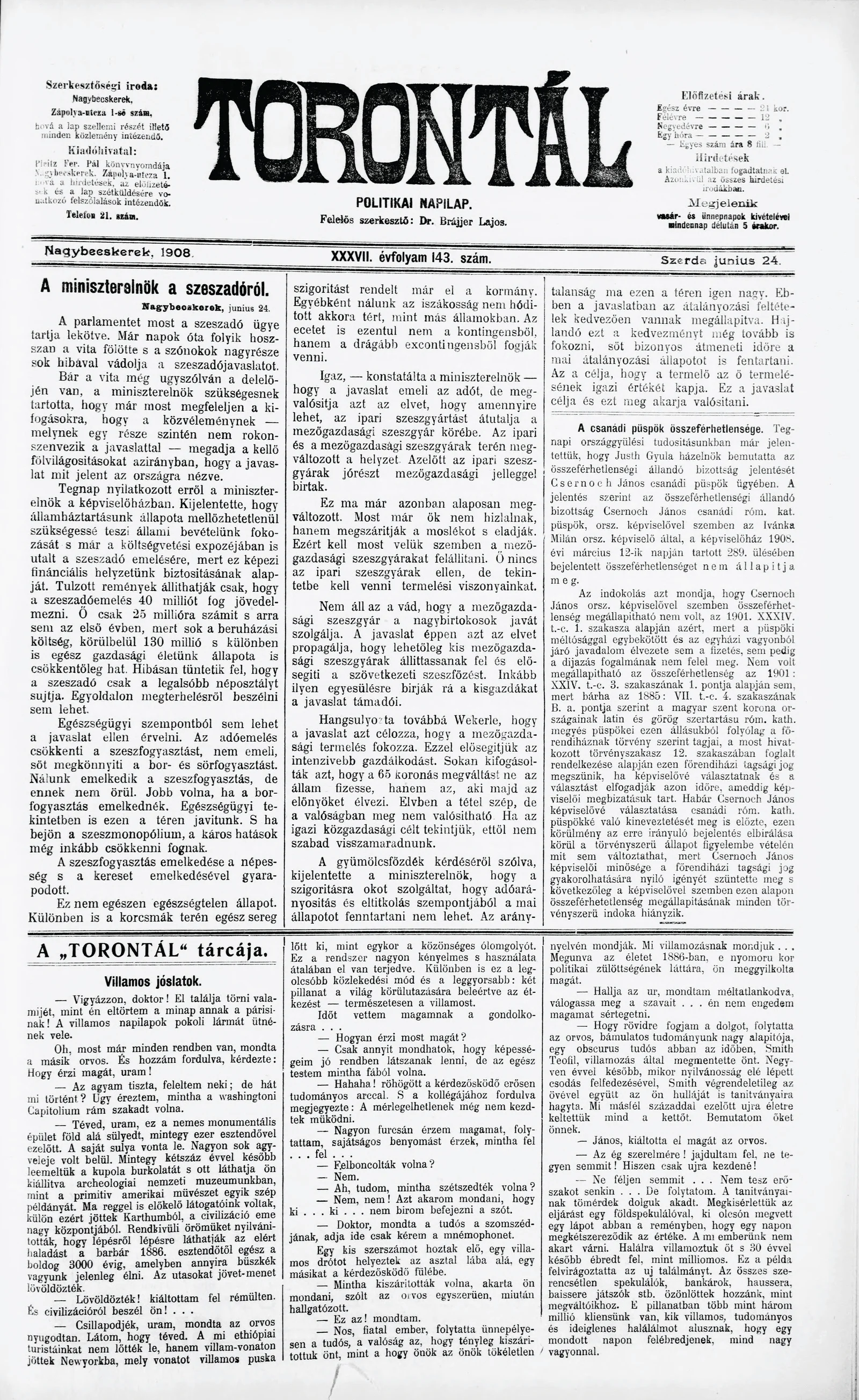 Torontál, 37. évf. 1908. június 24. 143. sz.