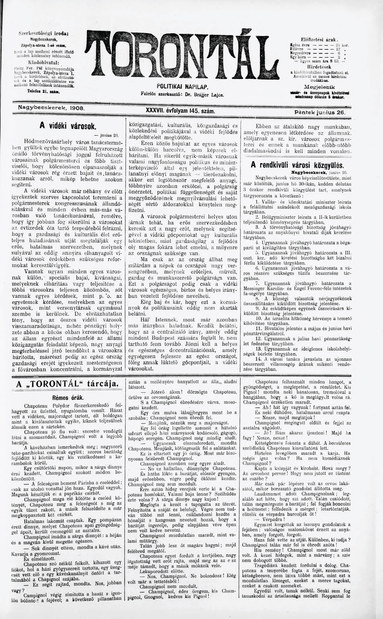 Torontál, 37. évf. 1908. június 26. 145. sz.