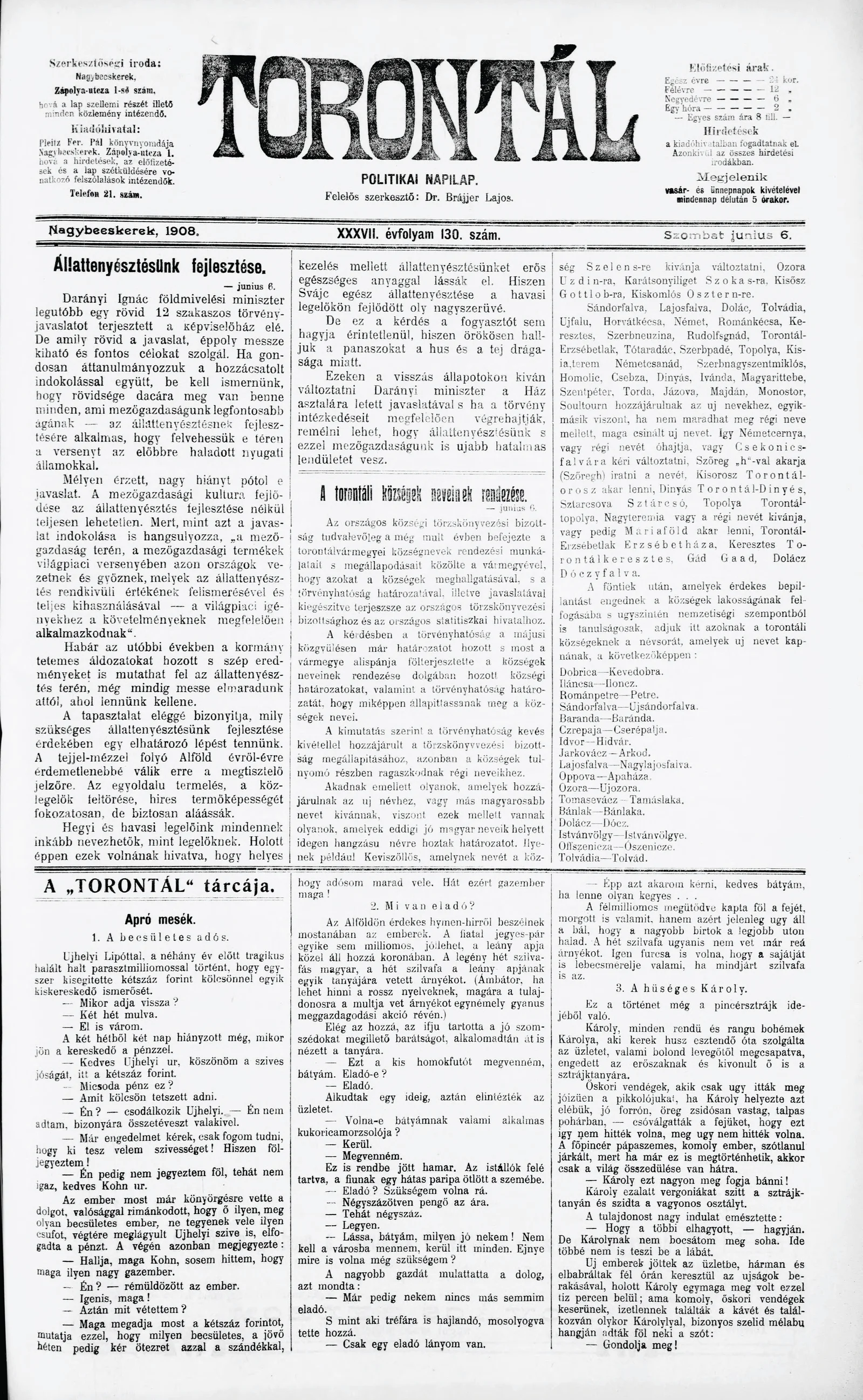 Torontál, 37. évf. 1908. június 6. 130. sz.
