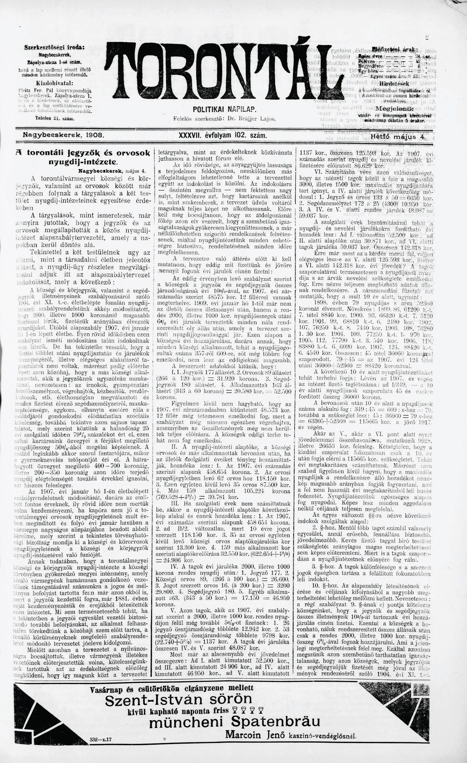 Torontál, 37. évf. 1908. május 4. 102. sz.