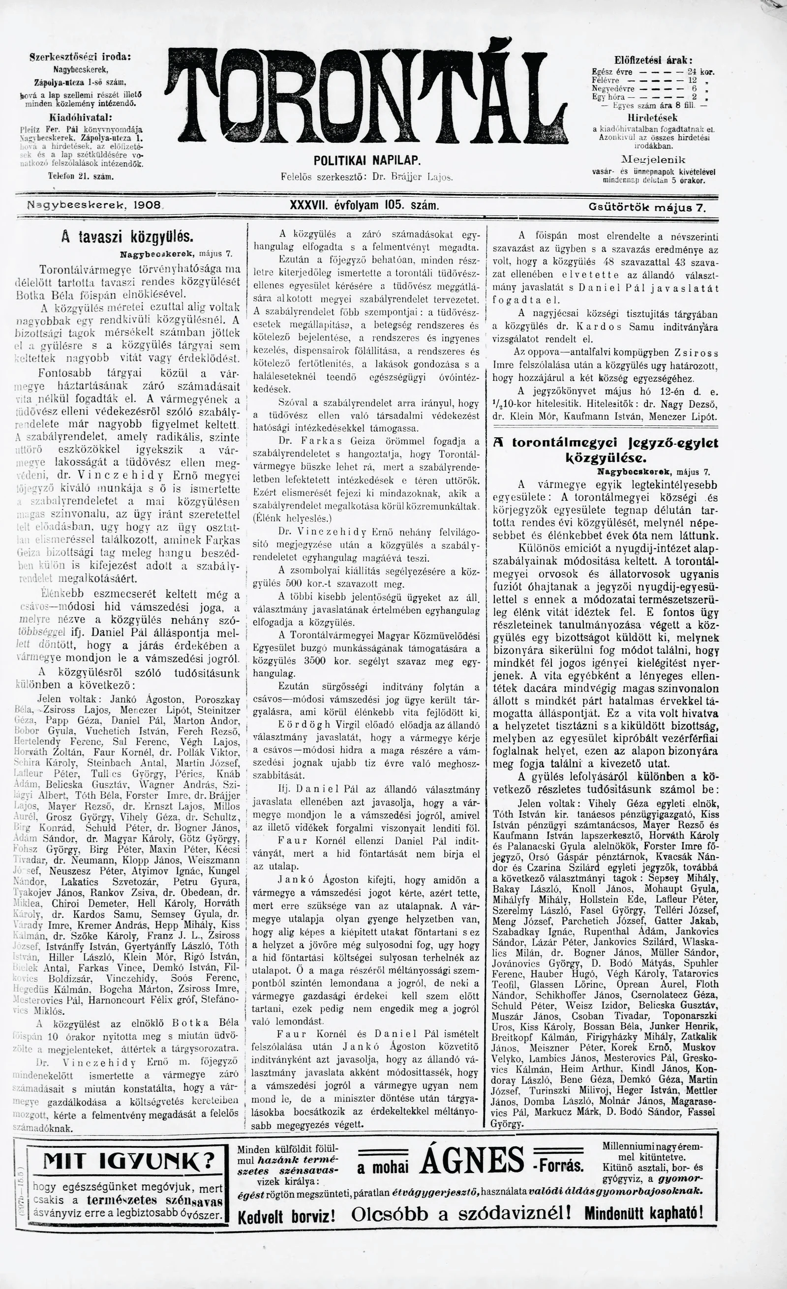 Torontál, 37. évf. 1908. május 7. 105. sz.