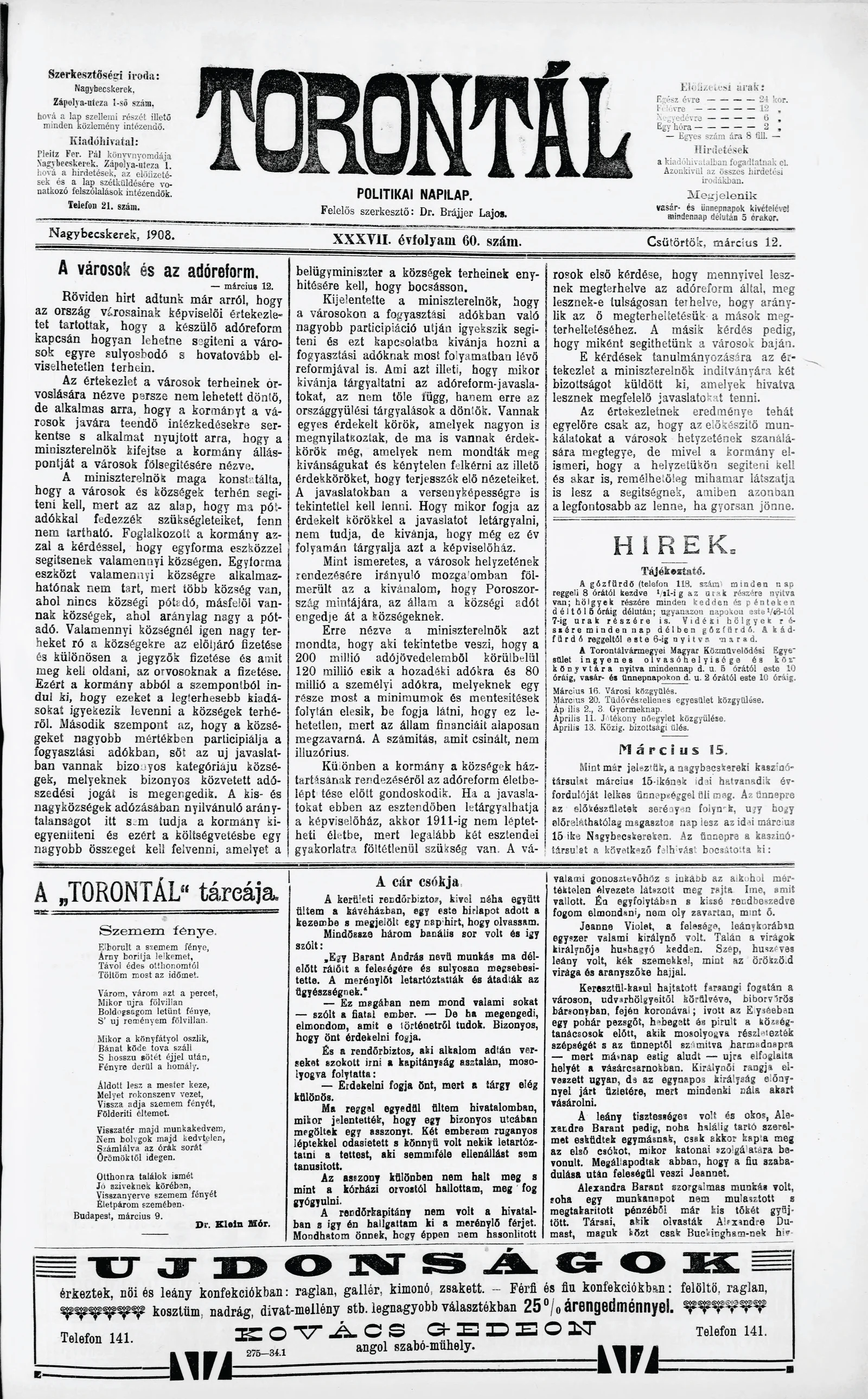 Torontál, 37. évf. 1908. március 12. 60. sz.