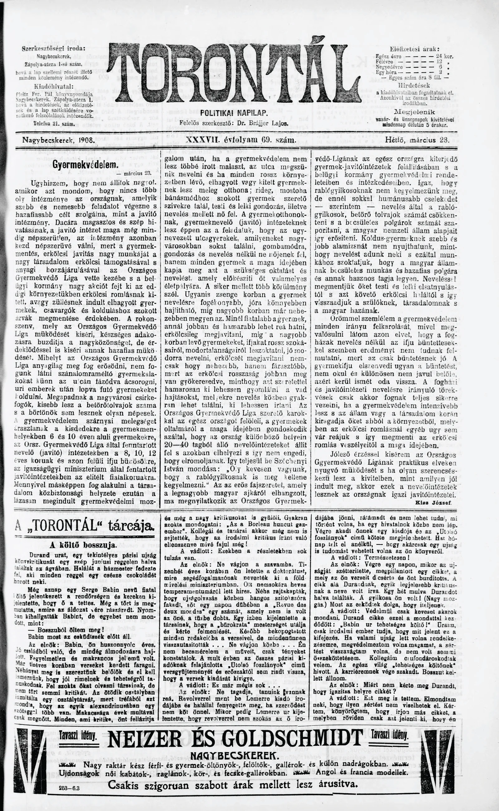Torontál, 37. évf. 1908. március 23. 69. sz.