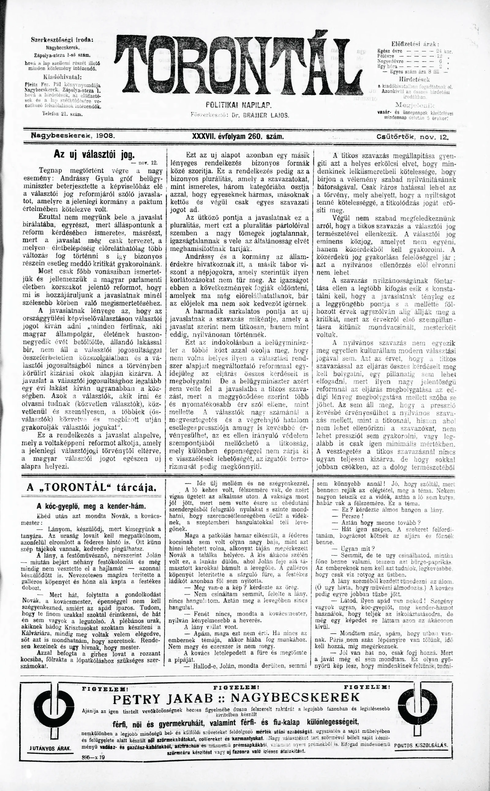 Torontál, 37. évf. 1908. november 12. 260. sz.