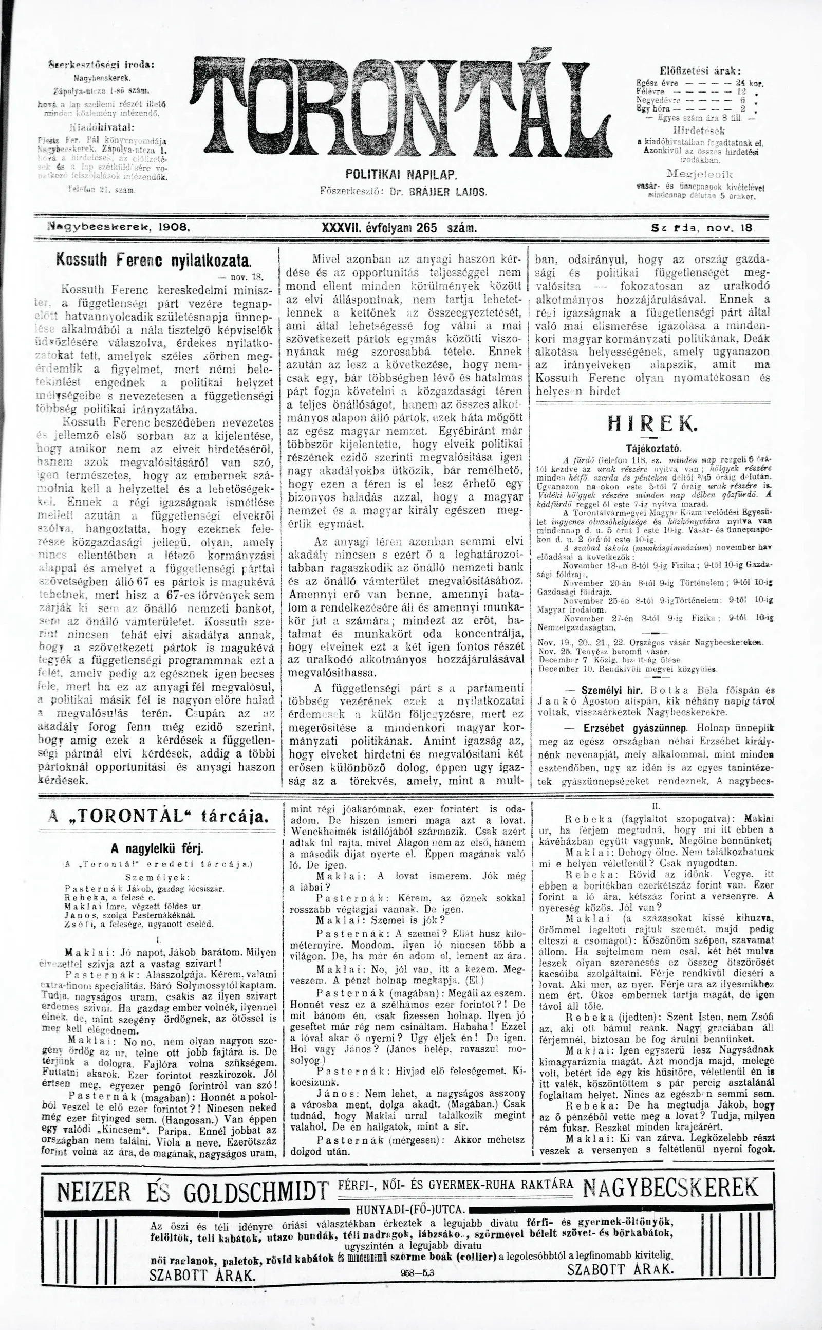 Torontál, 37. évf. 1908. november 18. 265. sz.