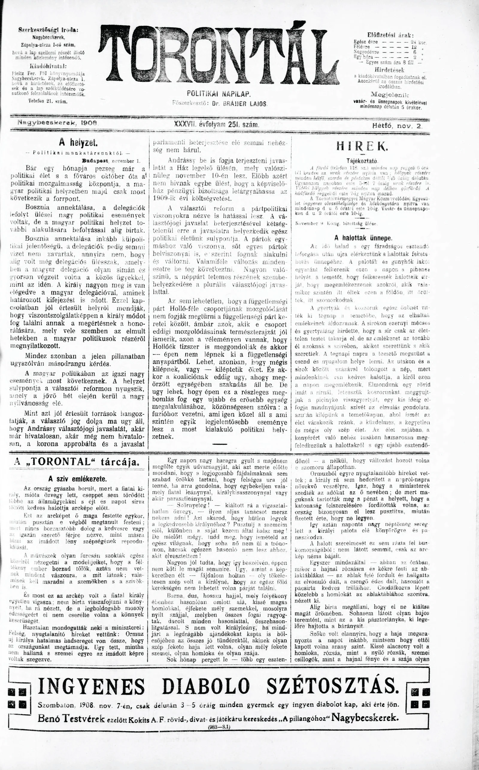 Torontál, 37. évf. 1908. november 2. 251. sz.