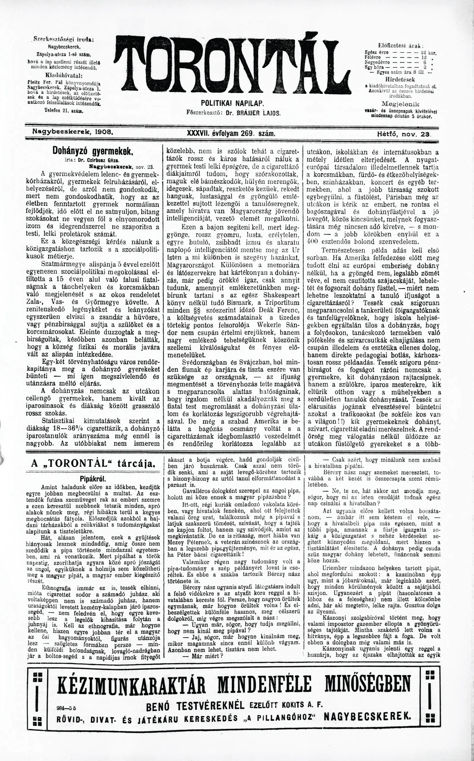 Torontál, 37. évf. 1908. november 23. 269. sz.