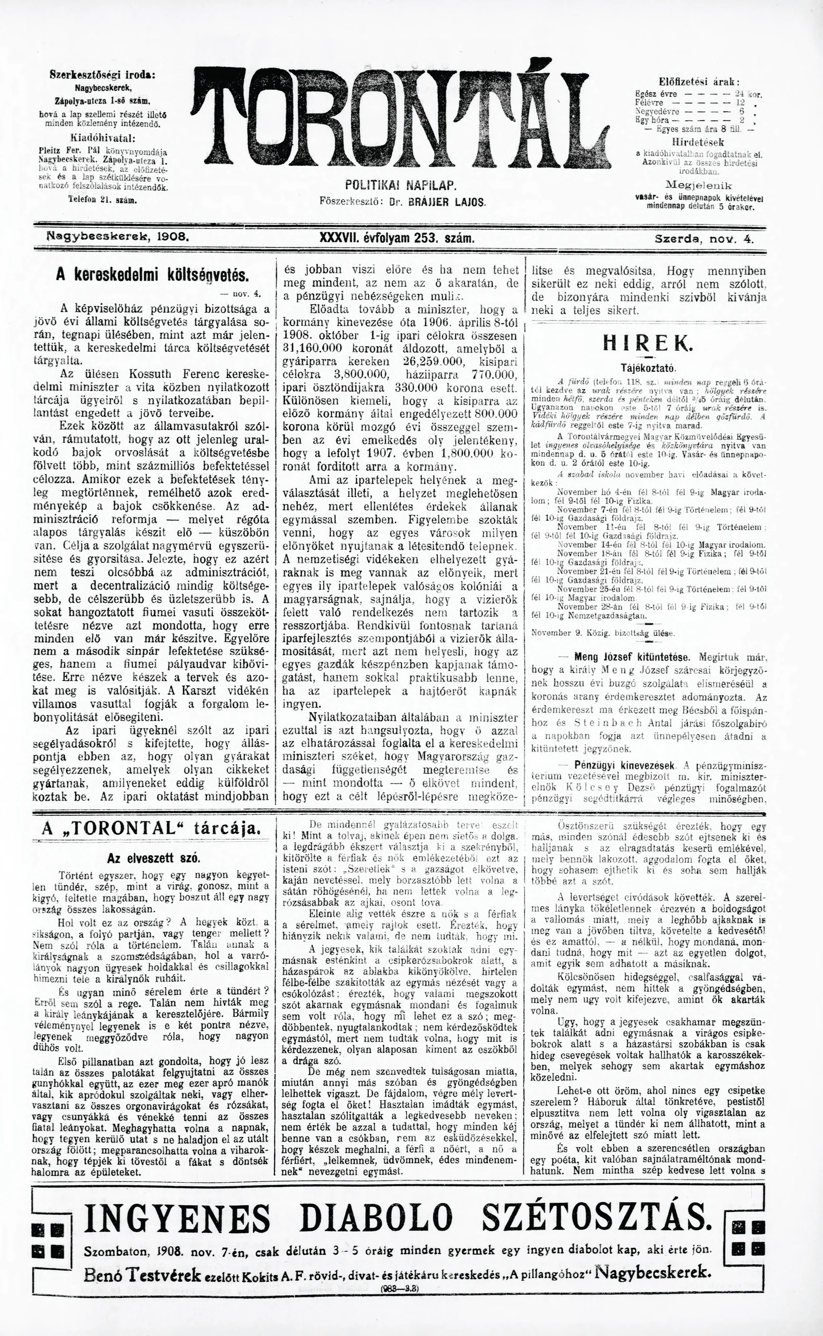 Torontál, 37. évf. 1908. november 4. 253. sz.