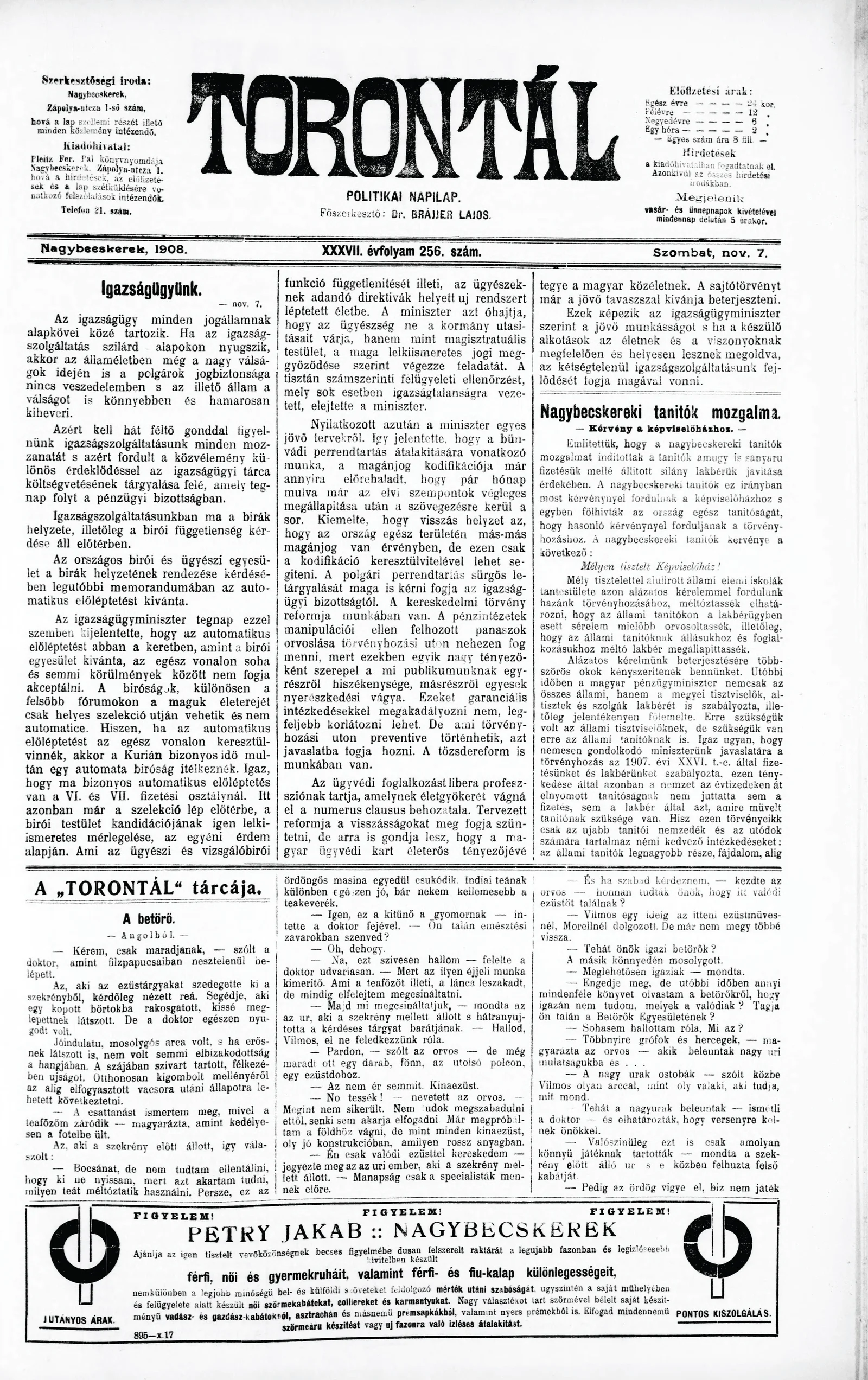 Torontál, 37. évf. 1908. november 7. 256. sz.