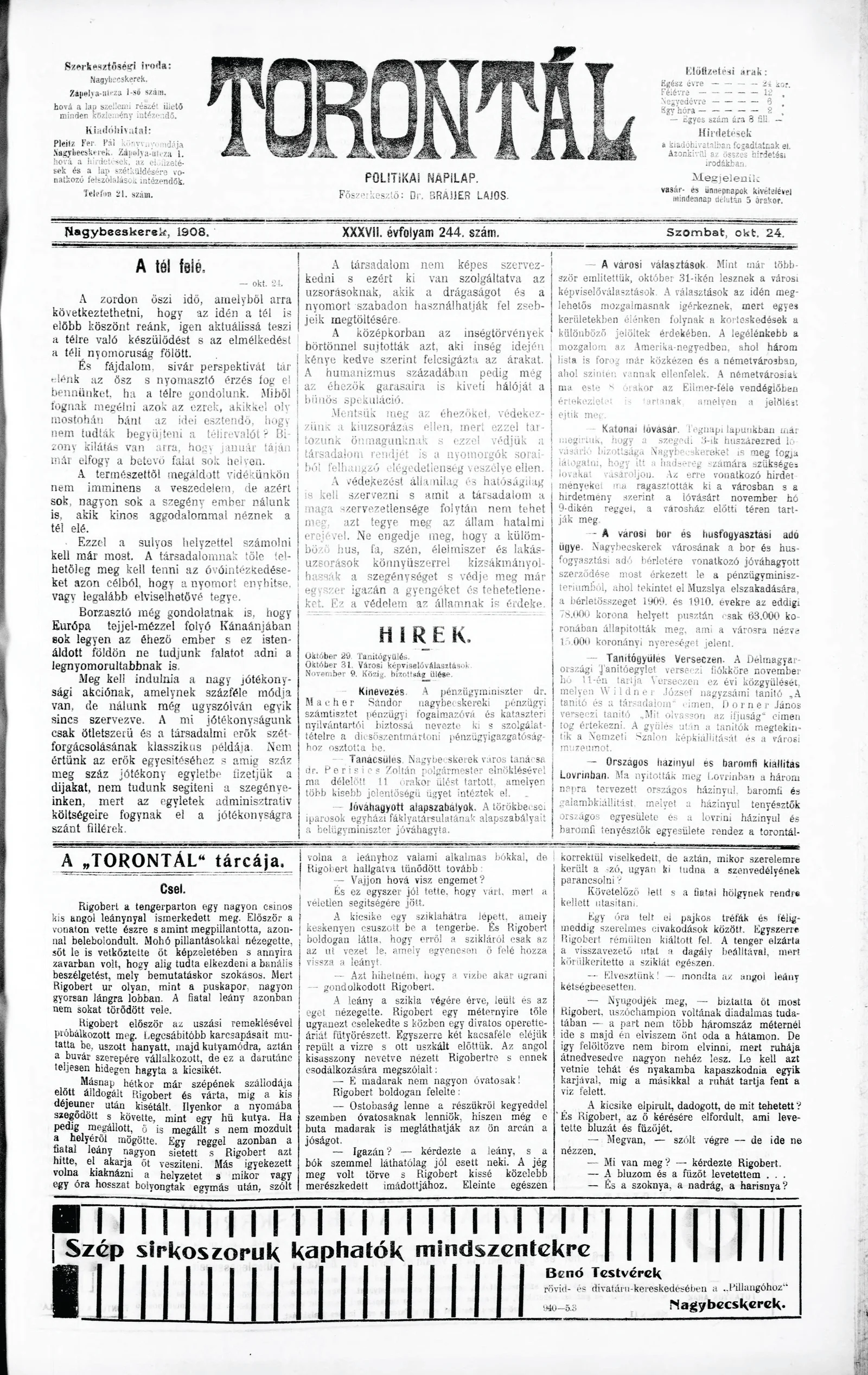 Torontál, 37. évf. 1908. október 24. 244. sz.