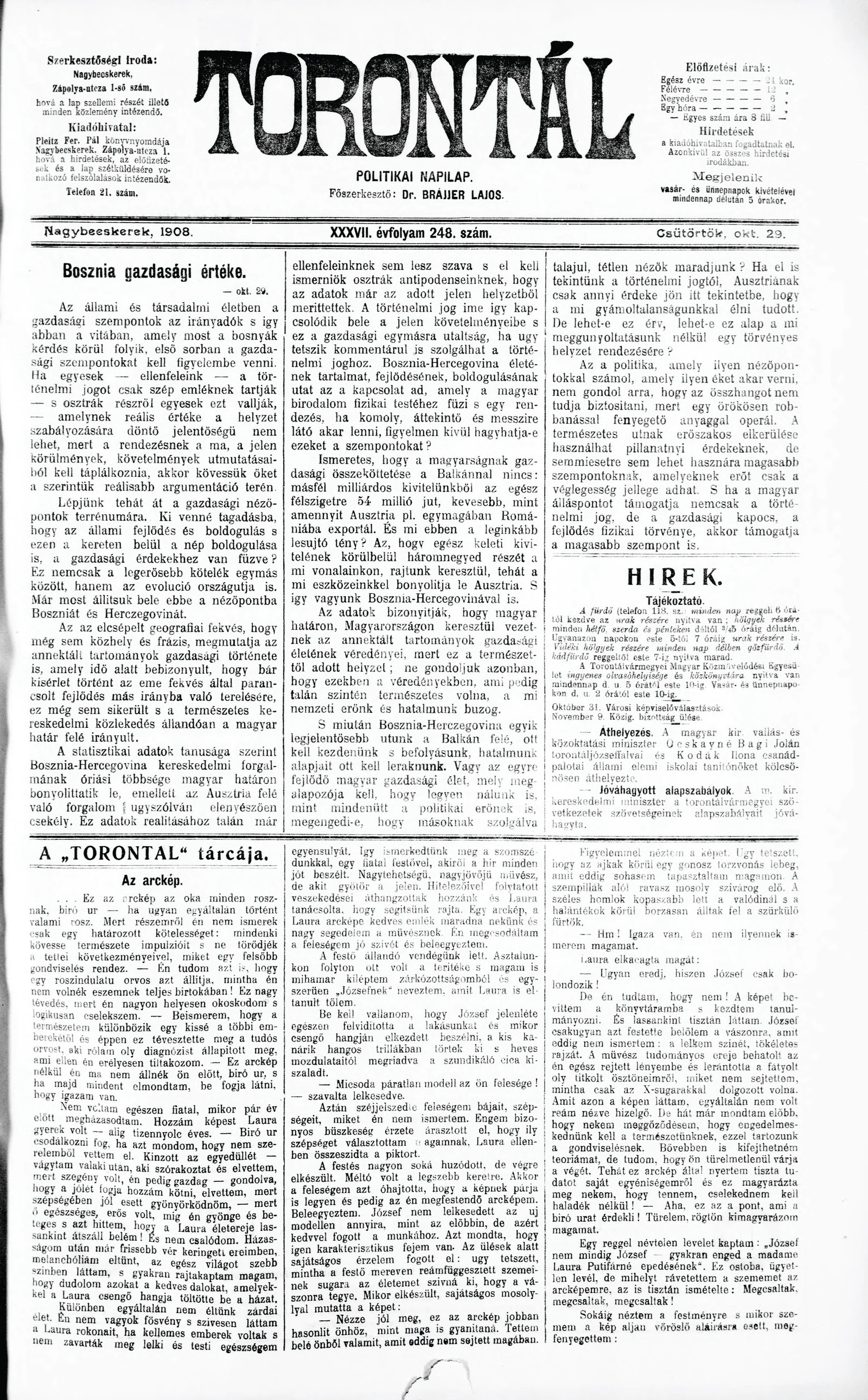 Torontál, 37. évf. 1908. október 29. 248. sz.