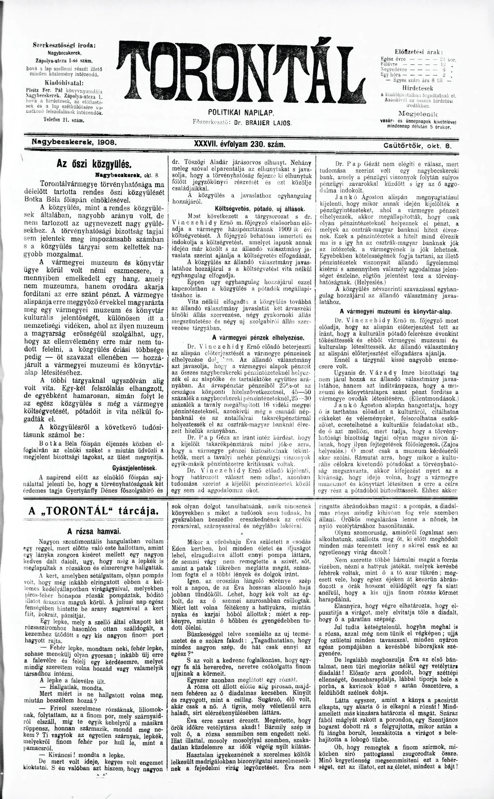 Torontál, 37. évf. 1908. október 8. 230. sz.