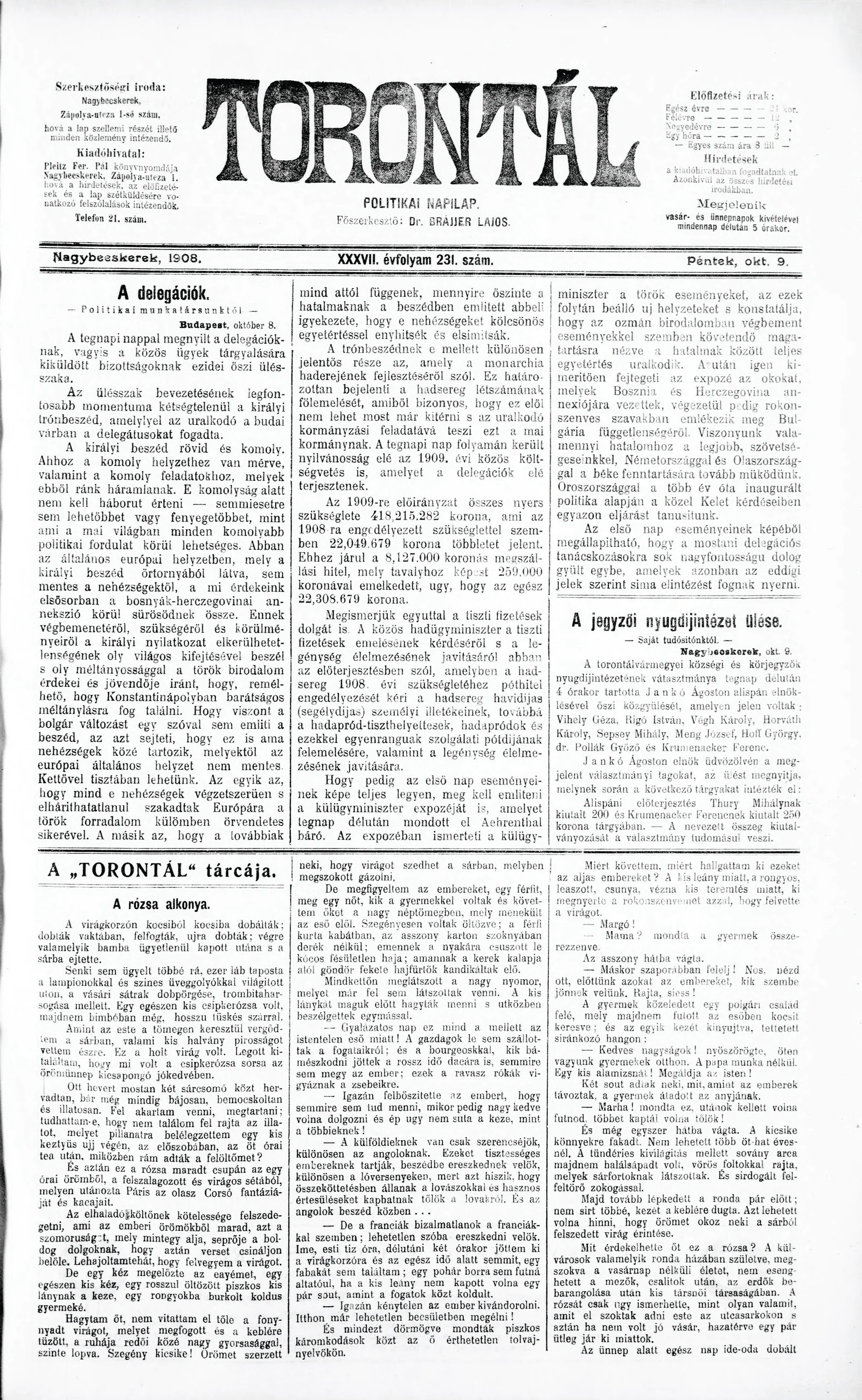Torontál, 37. évf. 1908. október 9. 231. sz.