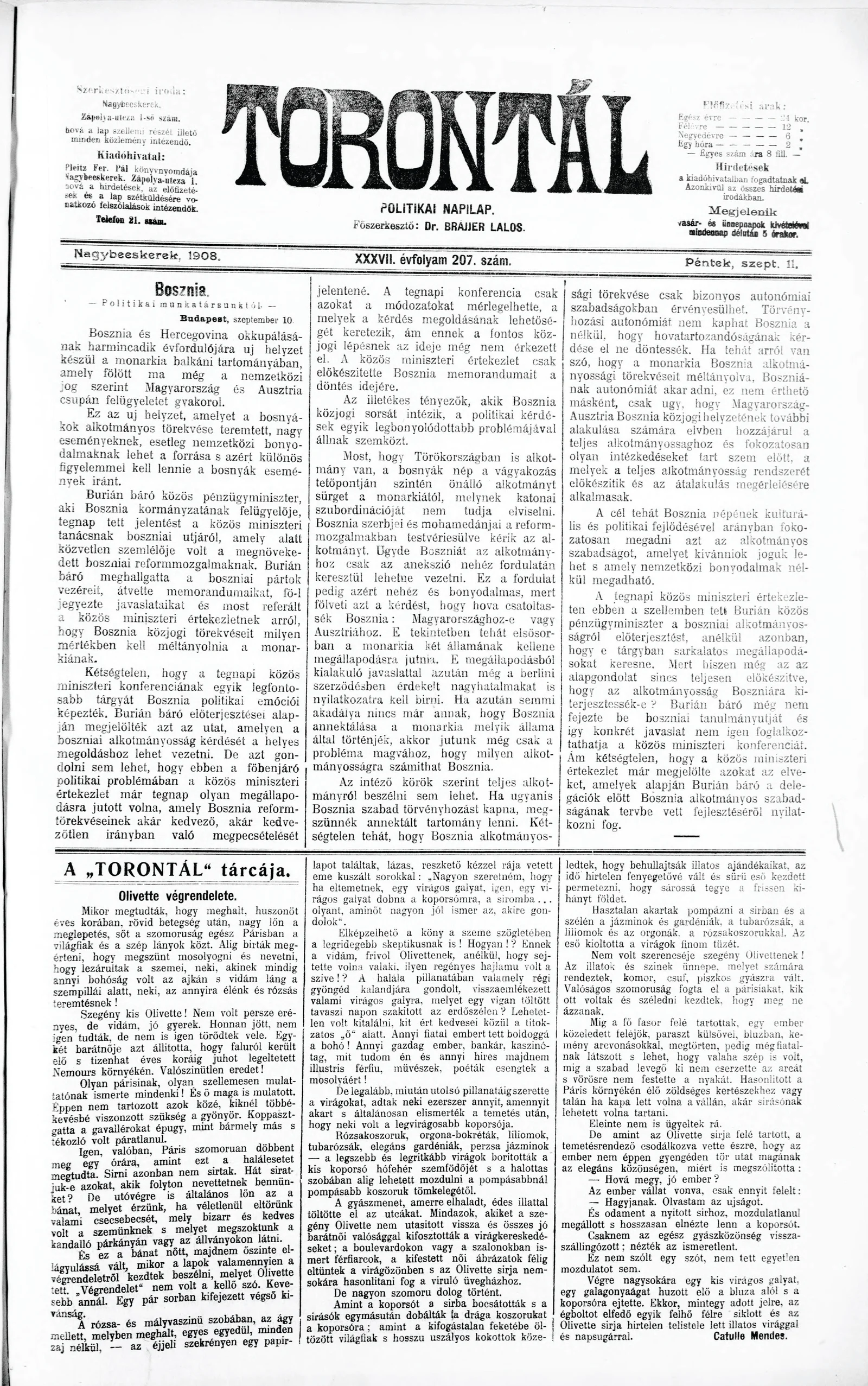 Torontál, 37. évf. 1908. szeptember 11. 207. sz.