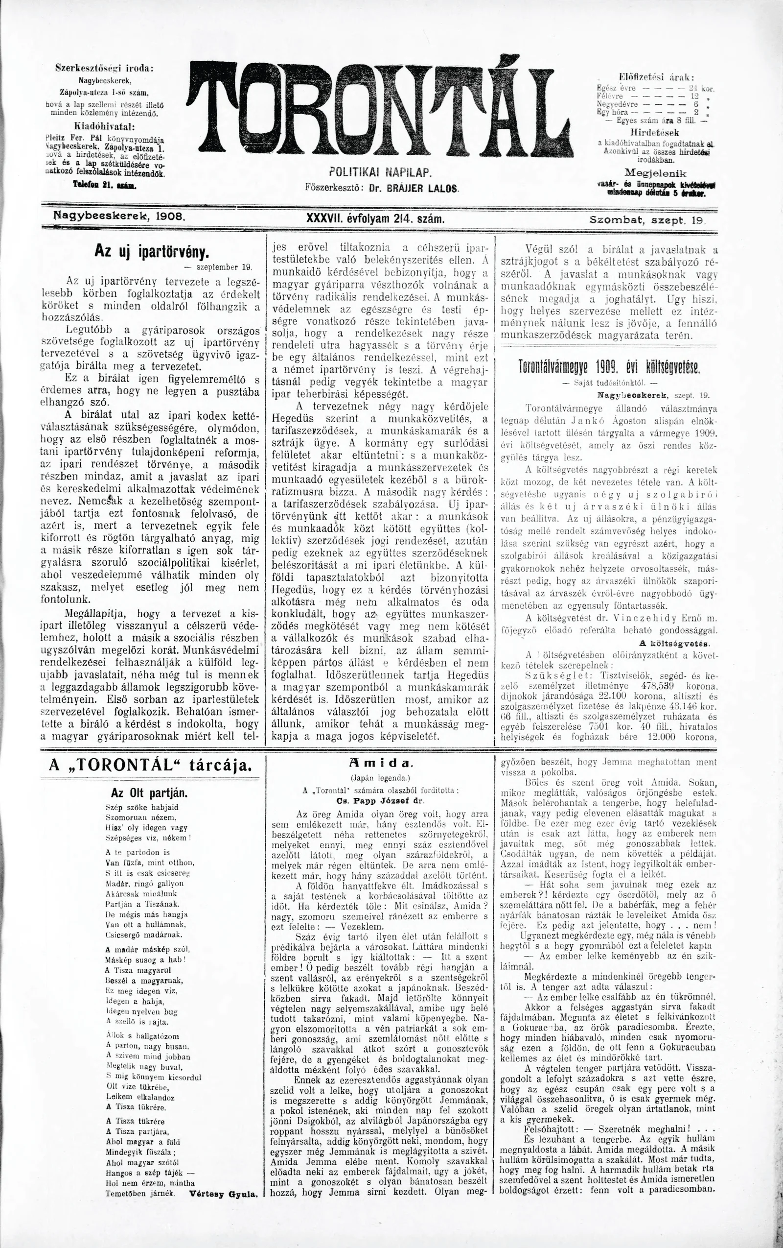 Torontál, 37. évf. 1908. szeptember 19. 214. sz.