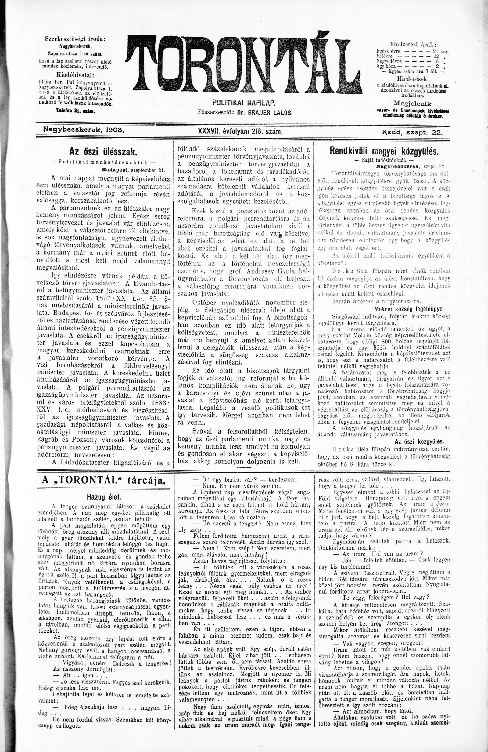 Torontál, 37. évf. 1908. szeptember 22. 216. sz.