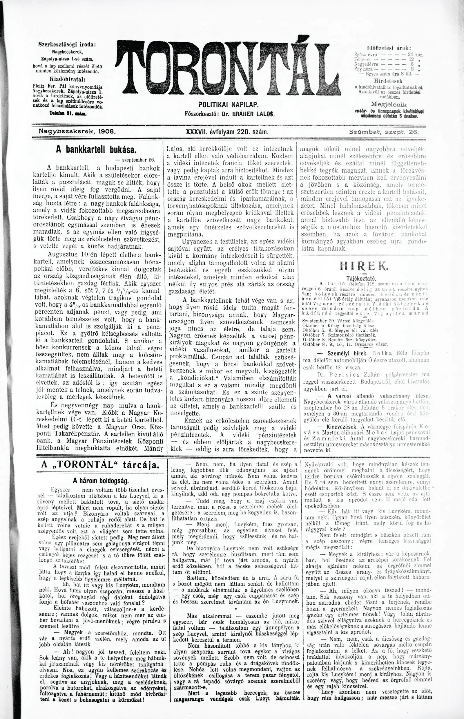 Torontál, 37. évf. 1908. szeptember 26. 220. sz.