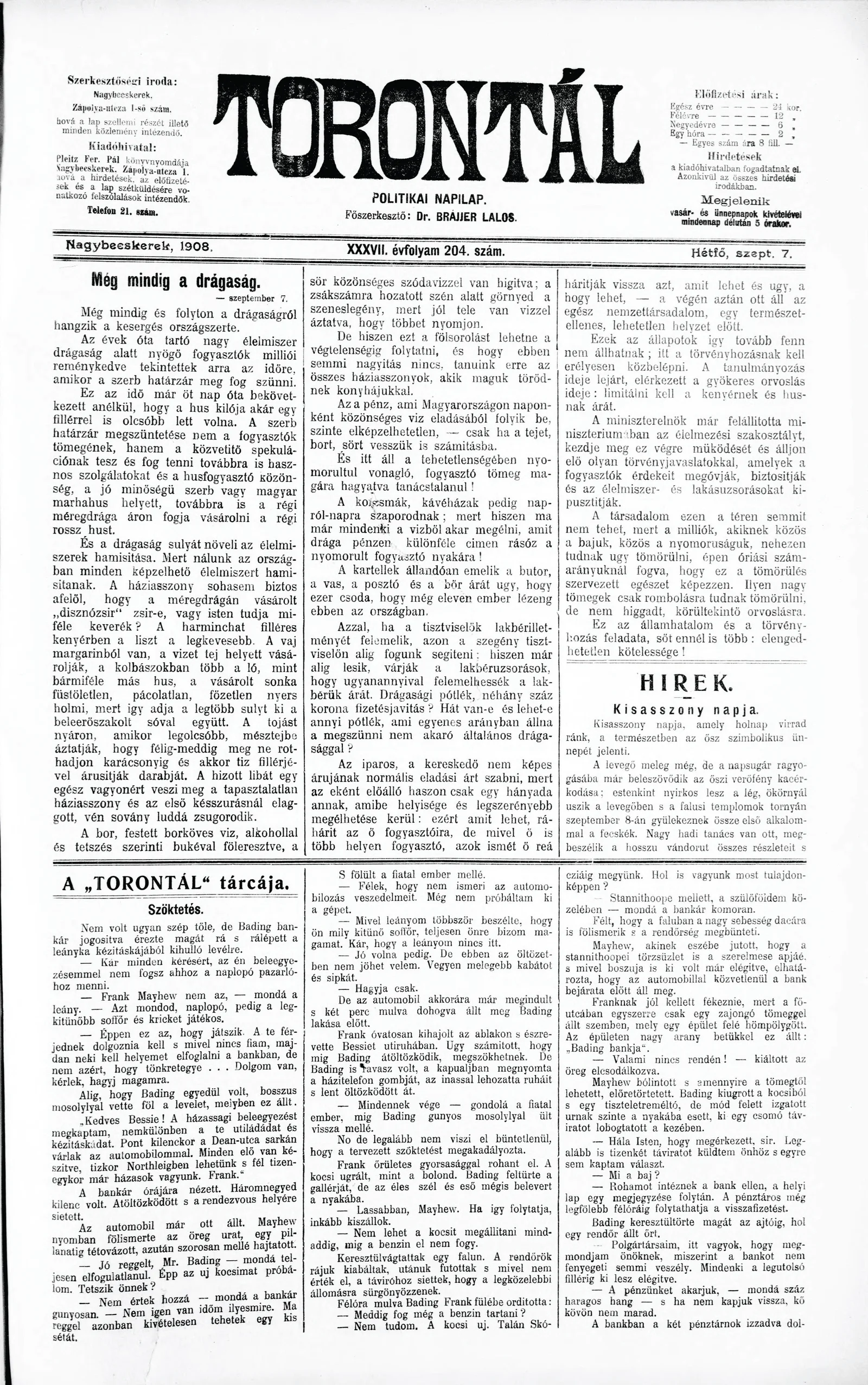 Torontál, 37. évf. 1908. szeptember 7. 204. sz.