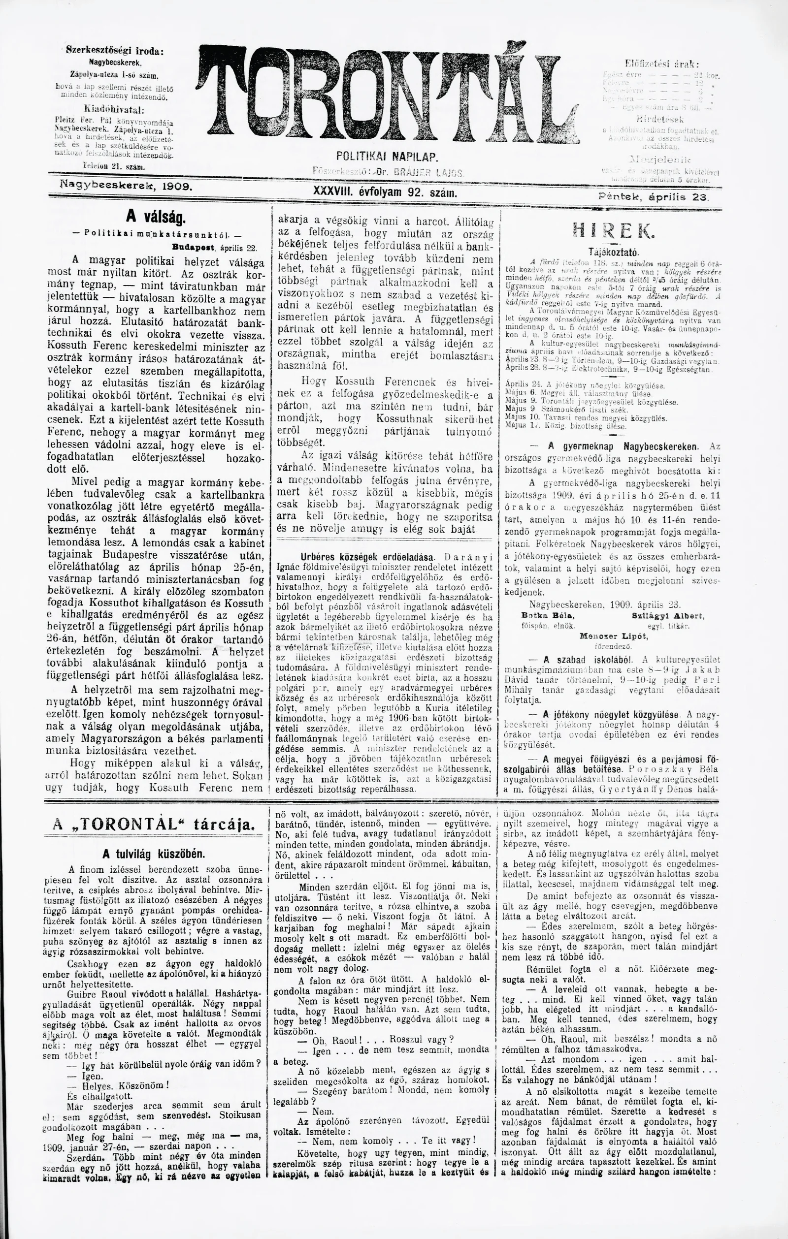 Torontál, 38. évf. 1909. április 23. 92. sz.