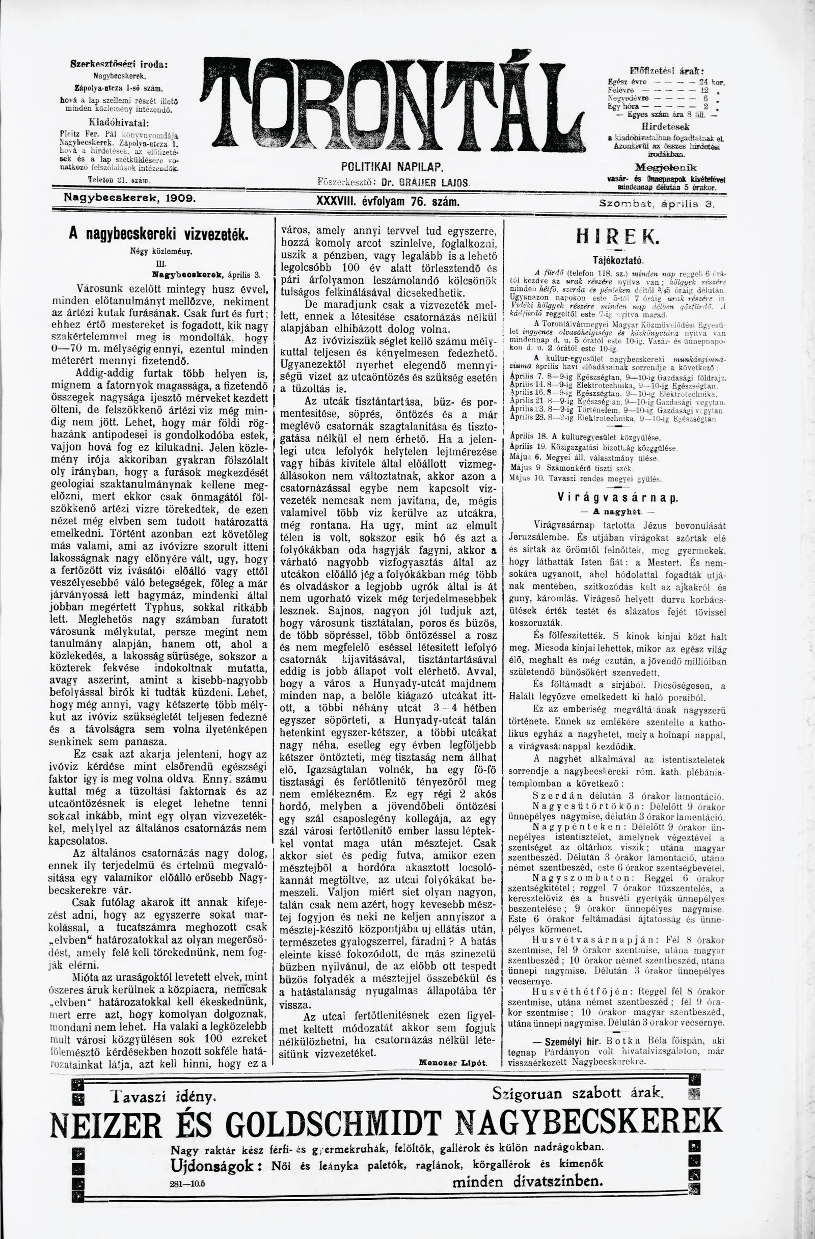 Torontál, 38. évf. 1909. április 3. 76. sz.